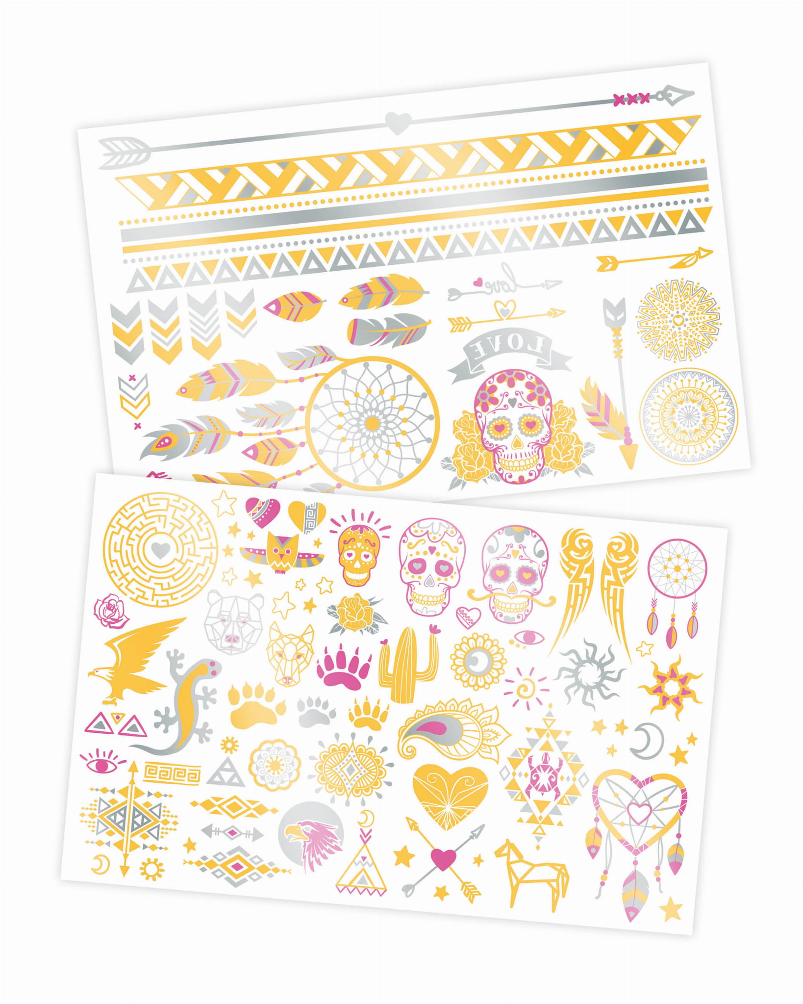 2 arkusze z około 75 zmywalnymi tatuażami z metalicznym połyskiem - łapacze