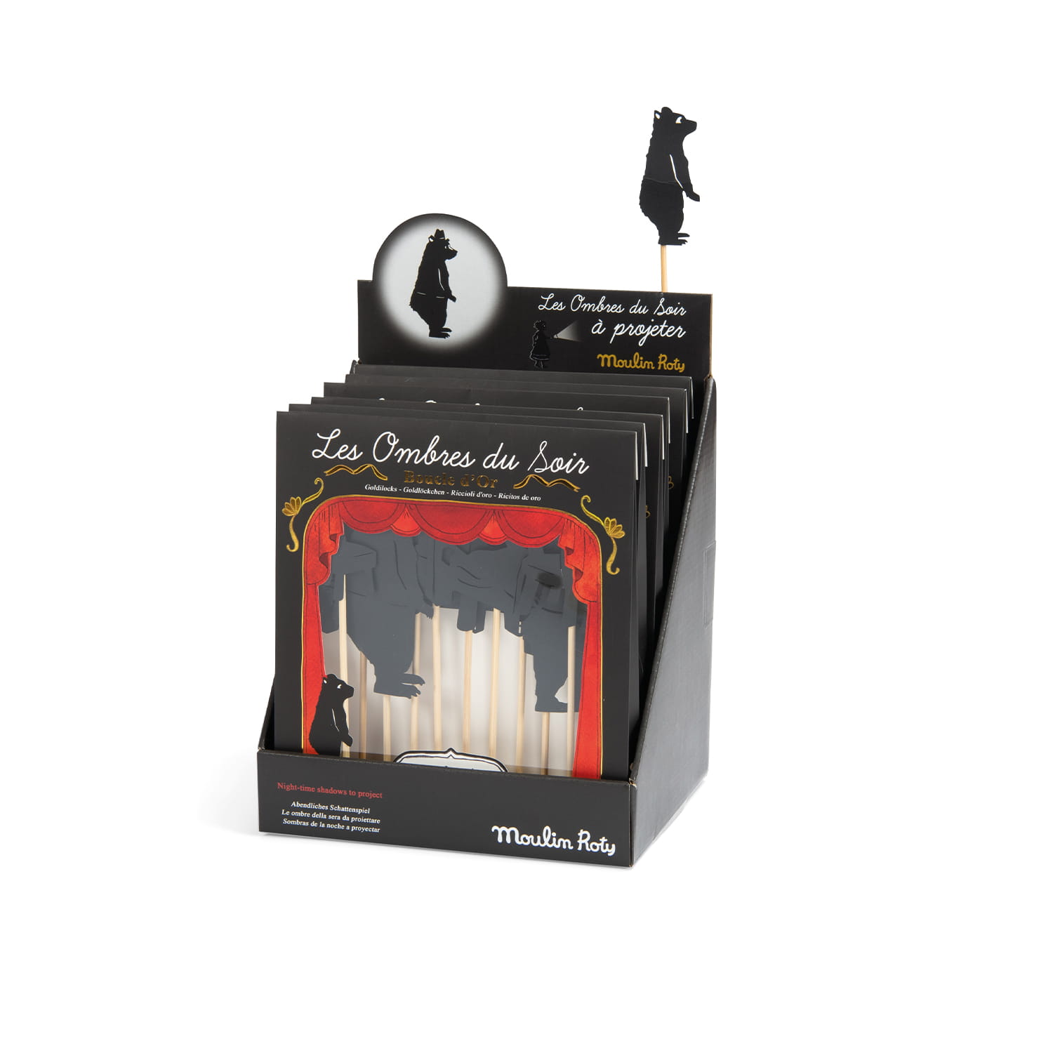 Teatrzyk cienij marki Moulin Roty. Zestaw zawiera laserowo wycinane postacie
