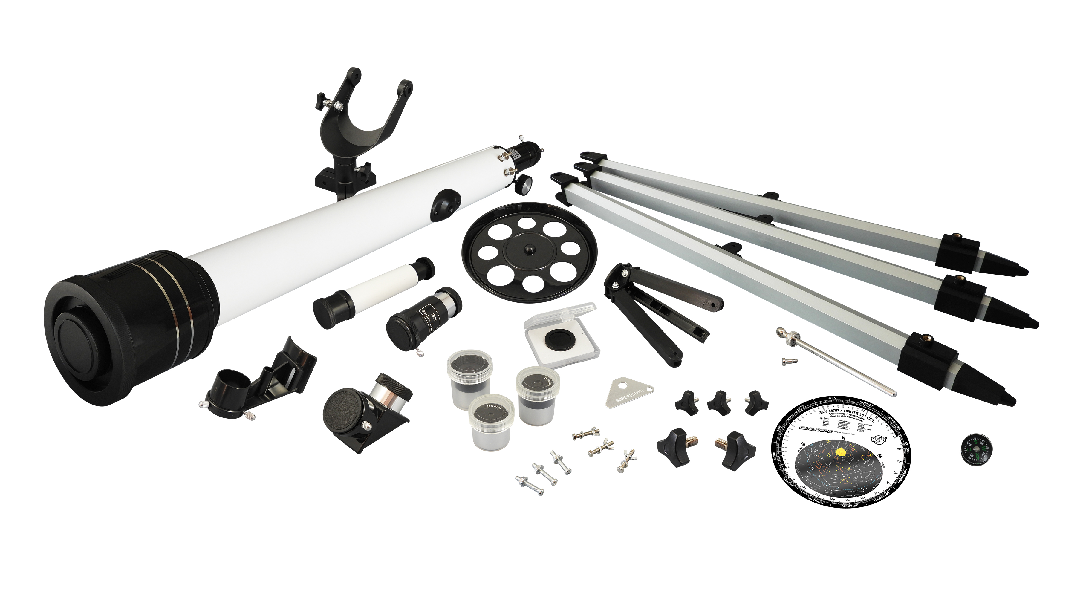 W zestawie liczne akcesoria: szukacz 5x24 mm, soczewka Barlowa 3x, filtr księżycowy i mapa nocnego nieba, które ułatwią znalezienie drogi.