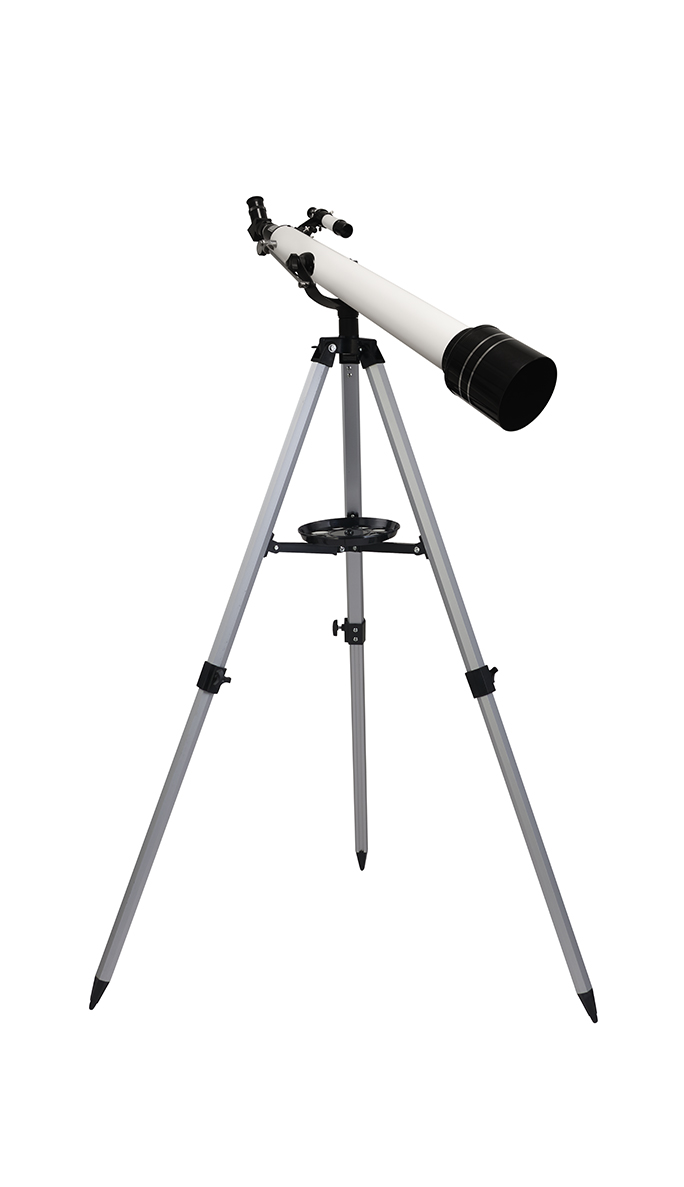 Całkowicie metalowa tuba. Średnica przysłony 60 mm i ogniskowa 700 mm. W zestawie 3 wymienne okulary: Kellnera 20 mm, 6 mm i 10 mm. Aluminiowy statyw z dwoma pozycjami: 65 cm i 110 cm.
