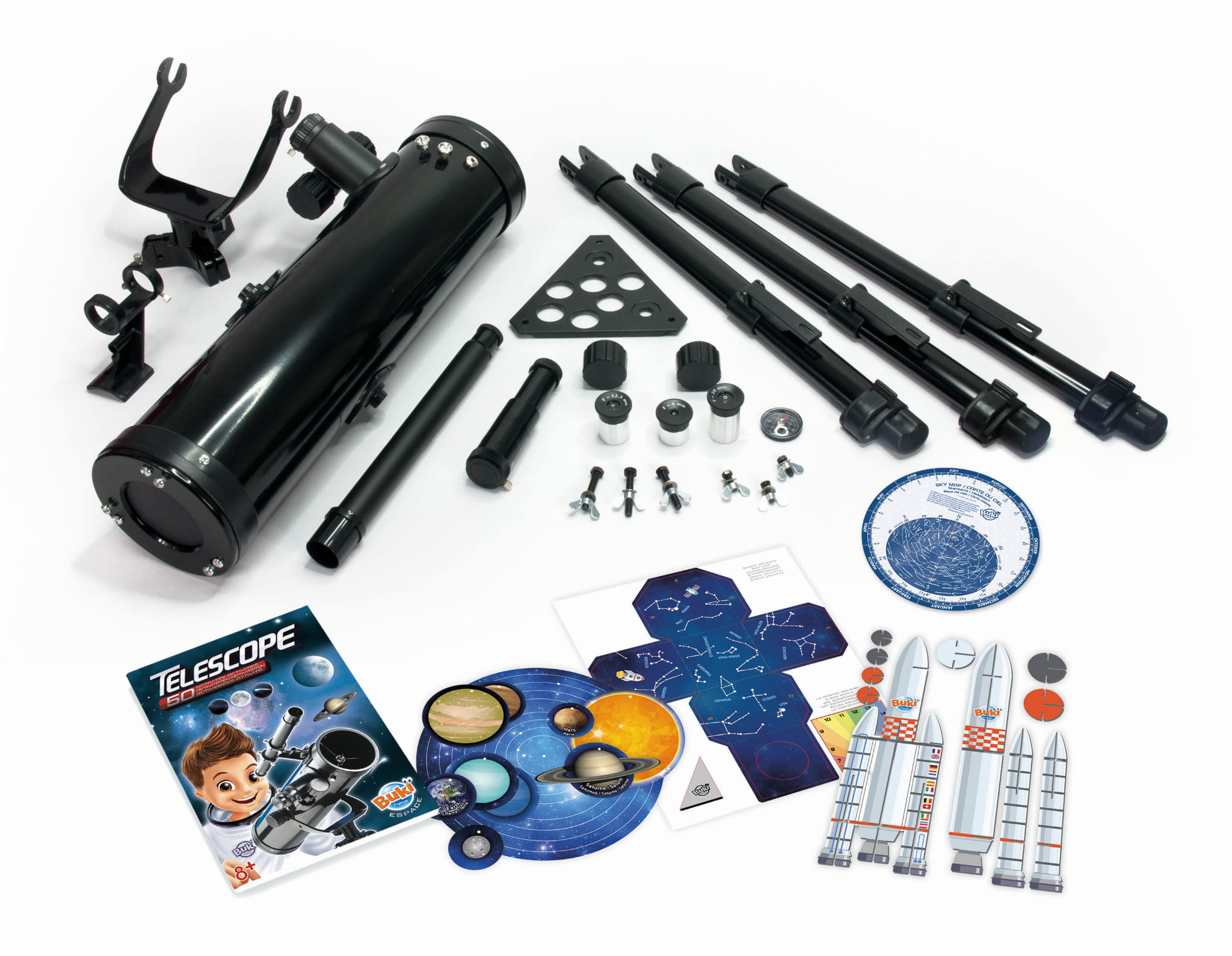 Zwierciadlany teleskop z książeczką do wykonania 50 doświadczeń - eksploracjagwieździstego nieba, planet czy kraterów Księżyca.