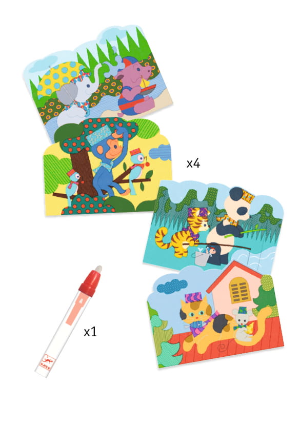 odsłania niespodzianki, które ukrywją obrazki - drzewa, wędkujące zwierzątka,