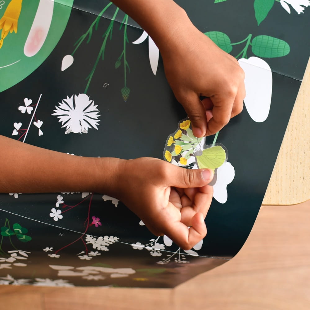 Plakat idealny dla małych botaników. Dziecko nakleja na plakacie 72 duże