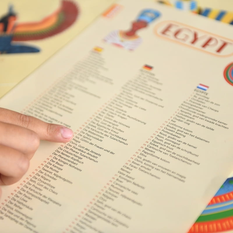 Plakat idealny dla pasjonatów Starożytnego Egiptu. Dziecko nakleja na
