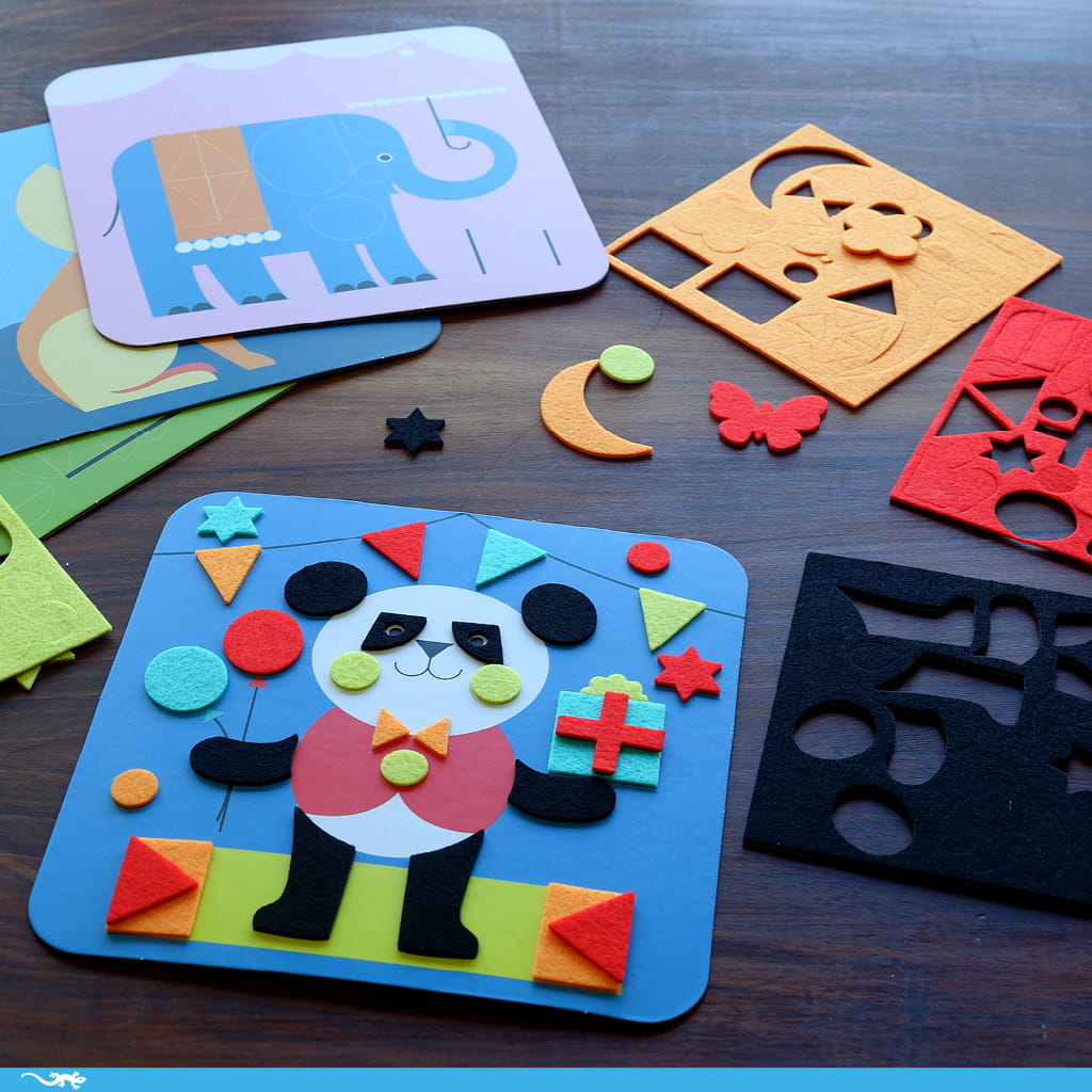 Zestaw artystyczny dla najmłodszych. Dziecko ozdabia kolorowymi elementami z