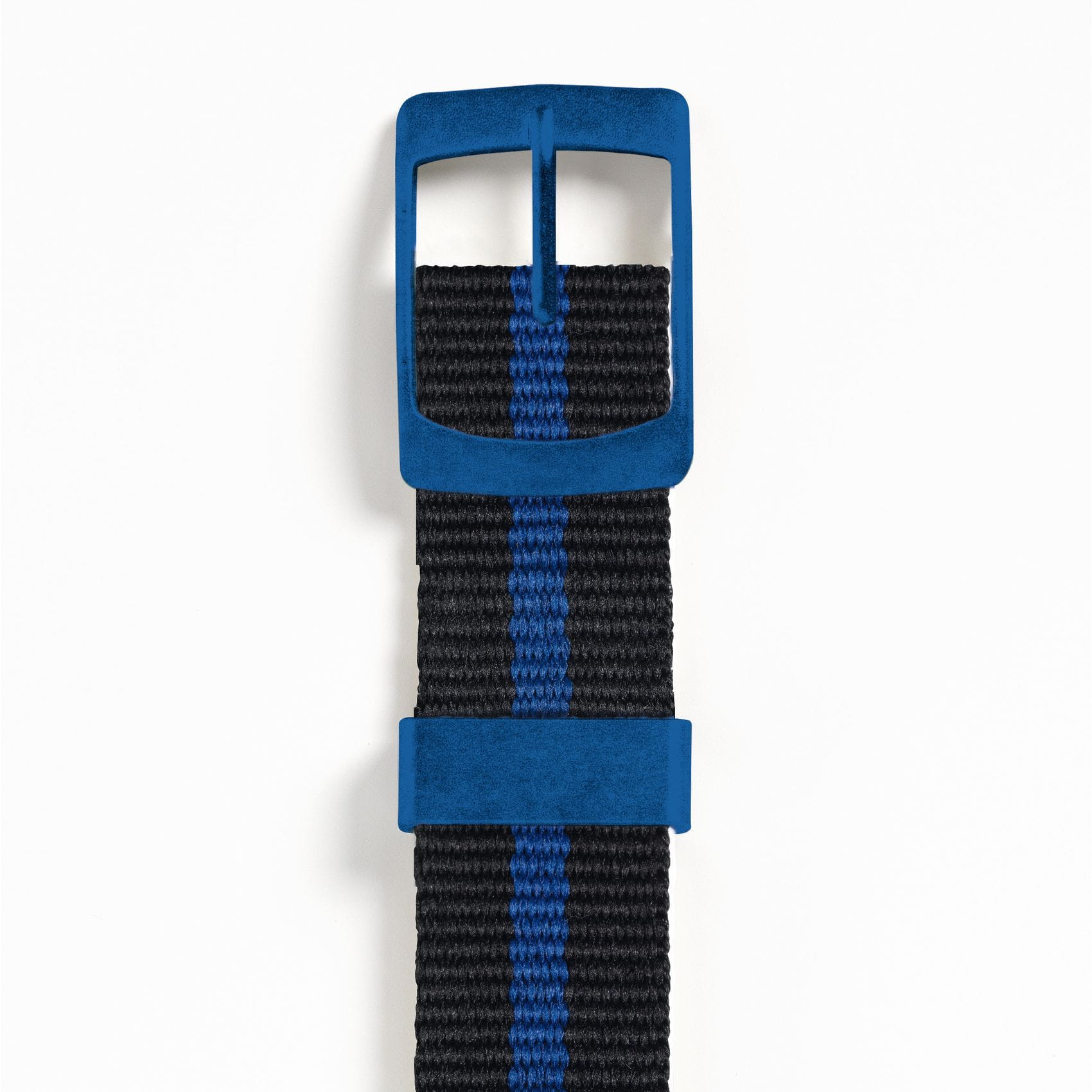 Wodoodporny do 5 barów. Ta klasa wodoodporności oznacza, że zegarek jest odporny na zachlapania i przypadkowy kontakt z wodą. Można nosić go w czasie deszczu, w miejscach o podwyższonej wilgotności takich jak basen oraz podczas kąpieli. Nie można w nim nurkować i uprawiać sportów wodnych. Zawiera wbudowaną baterię SR626SW. Posiada 2-letnią gwarancję oraz wstrząsoodporną obudowę. Czarny pasek z granatową kreską po środku jest wykonany z wytrzymałego materiału i posiada regulację.