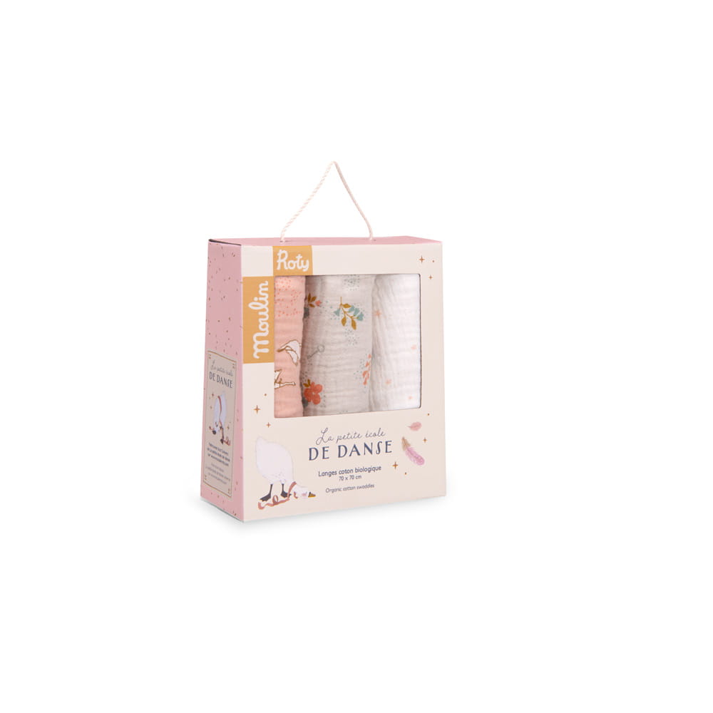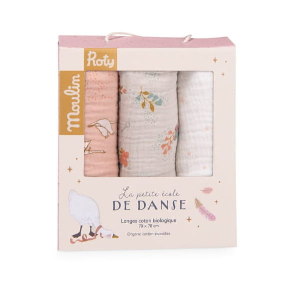 Urocze muślinowe pieluszki otulą niemowlę i zapewnią odpowiednie poczucie komfortu podczas spaceru, drzemki lub przydadzą się podczas pielęgnacji. Zestaw 3 sztuk pieluszek z kolekcji MAŁA SZKOŁA TAŃCA francuskiej marki Moulin Roty jest zapakowany w ozdobne pudełko. Idealne na prezent dla nowonarodzonego maluszka. Wykonane z organicznej i oddychającej bawełny, posiadającej certyfikat OEKO-TEX®. Ozdobione uroczymi wzorami (rośliny i zwierzęta). Zaleca się prać w 40 stopniach i suszyć w niskiej temperaturze. Nie prasować.