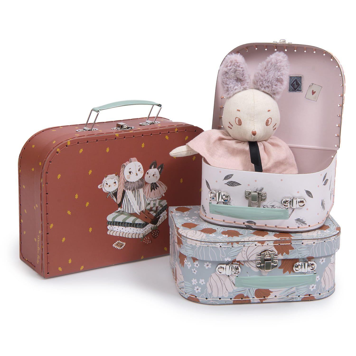 Zestaw 3 pięknie zdobionych walizek dla dziewczynki z kolekcji Apres la