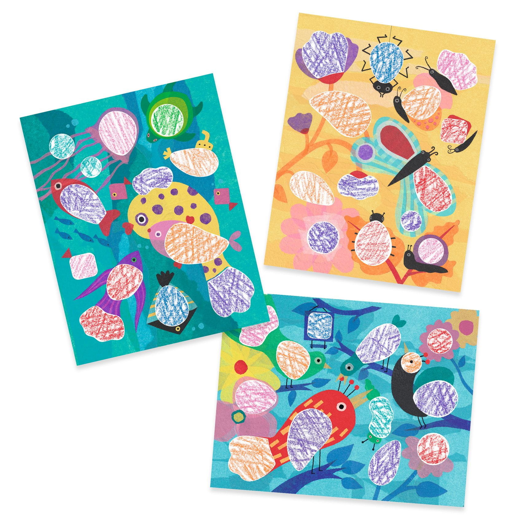 gruby szablon, 3 dwustronne kredki woskowe (6 kolorów) i 1 książeczka