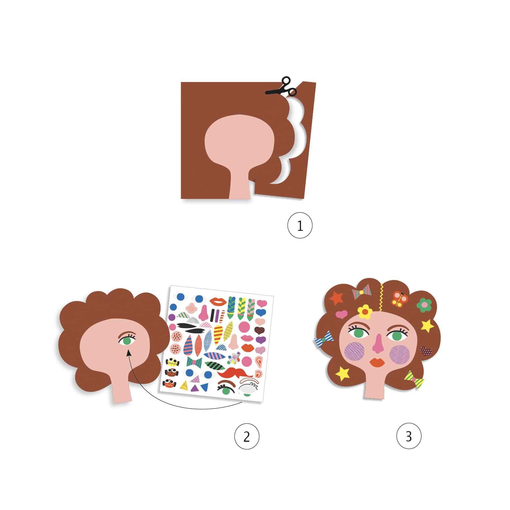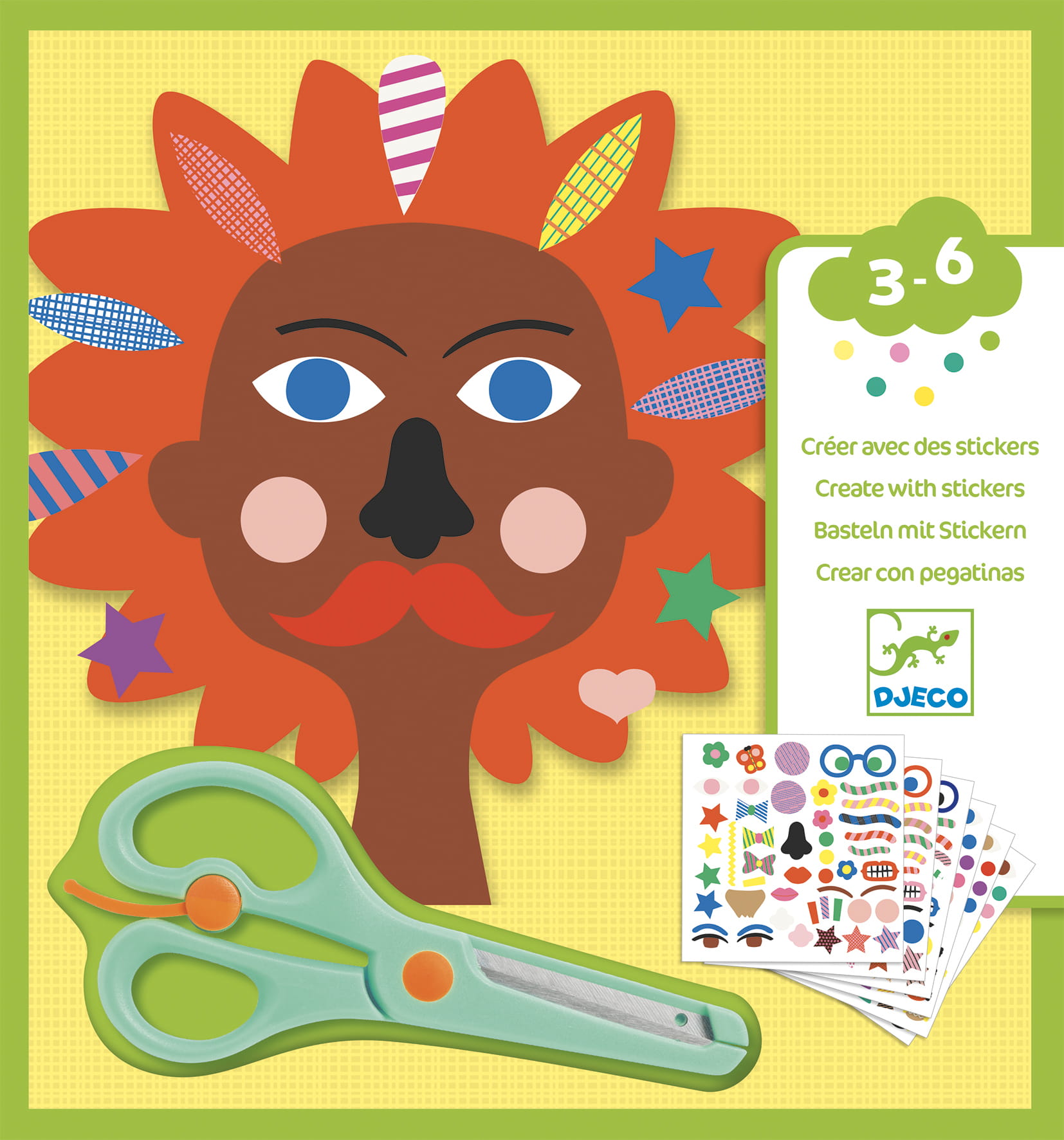 Zestaw z naklejkami do tworzenia zabawnych fryzur ,za pomocą nożyczek dostosowanych do małych rączek