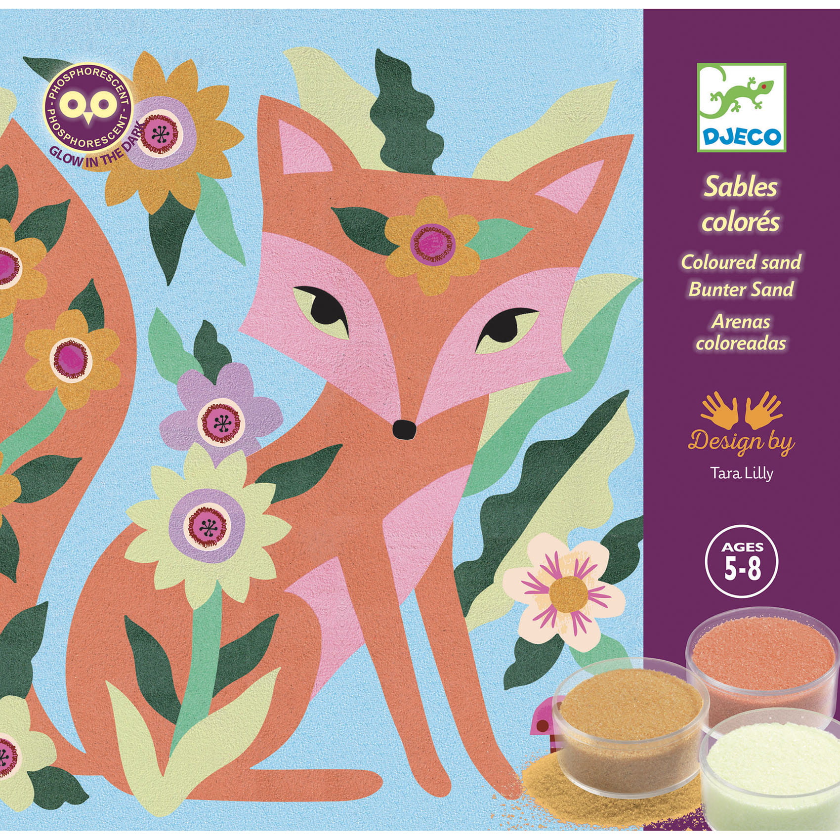 kolorowych, fluorescencyjnych piasków. Kartka jest pokryta klejem, który
