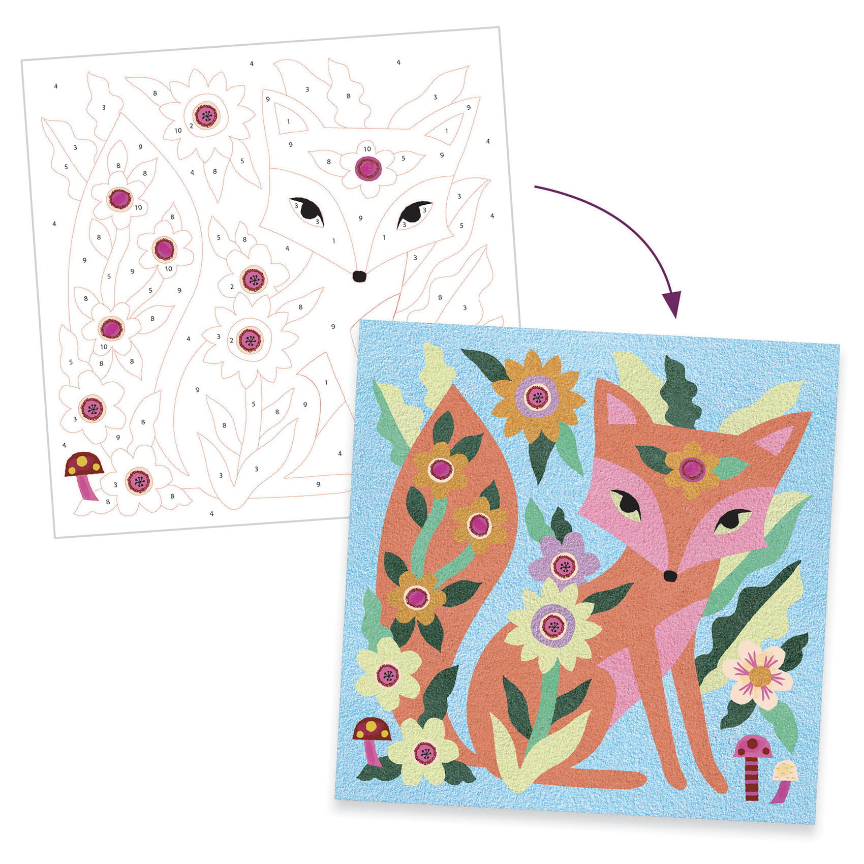 Zestaw artystyczny, w którym dziecko dekoruje obrazki za pomocą