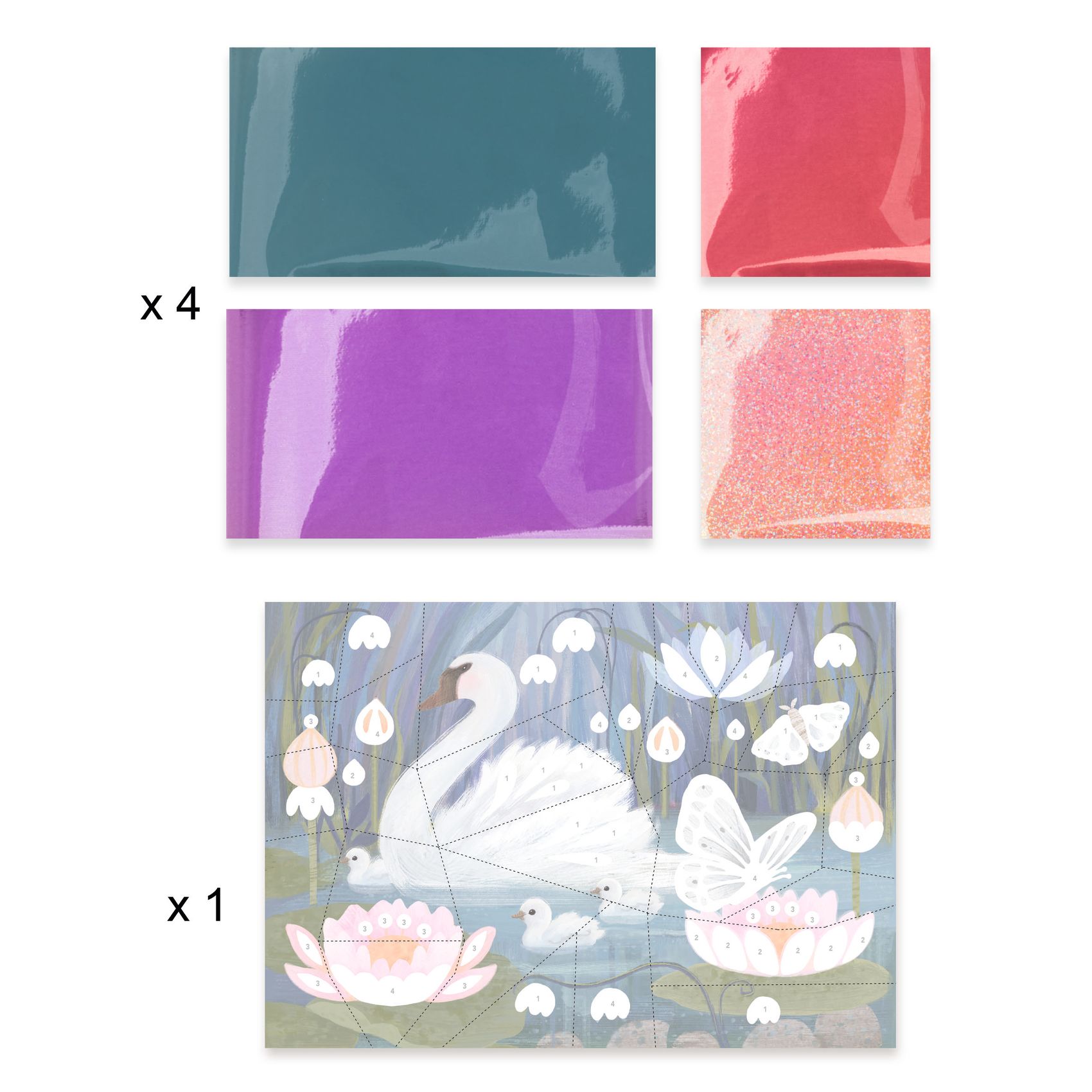 Prawdziwe kreatywne pudełko dla dzieci od 6. roku życia. Przepiękne ilustracje, po ozdobieniu mogą stać się ozdobą dziecięcego pokoju. Powstałe obrazki to małe dzieła sztuki. Różnorodność zadań zapewnia wiele godzin artystycznej zabawy. Elementy zestawu zostały wykonane z papieru i kartonu posiadającego certyfikat FSC®.