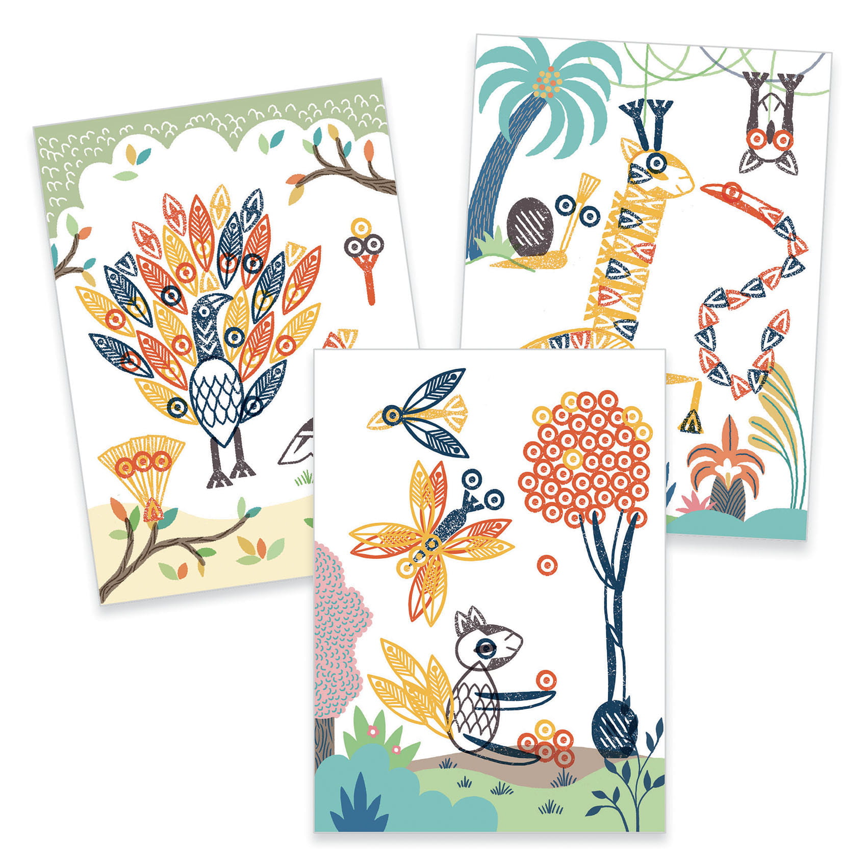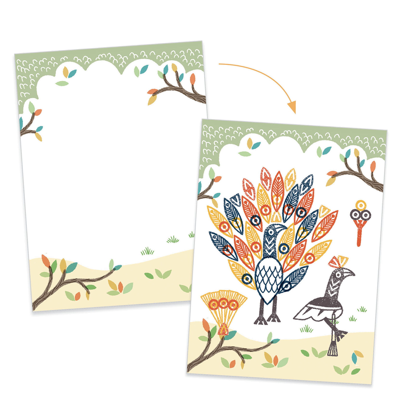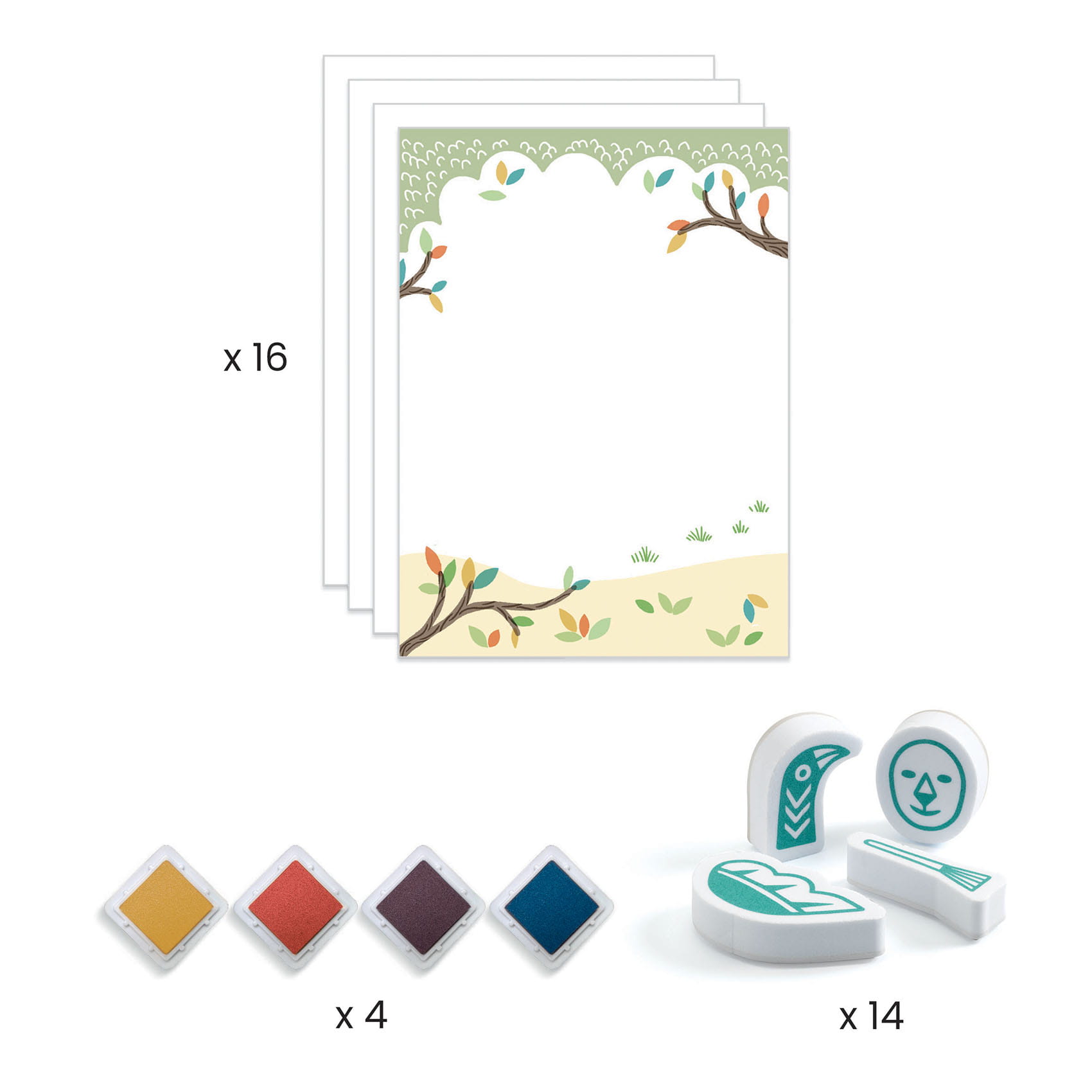 Zestaw artystyczny o tematyce zwierząt z pieczątkami, z których dziecko