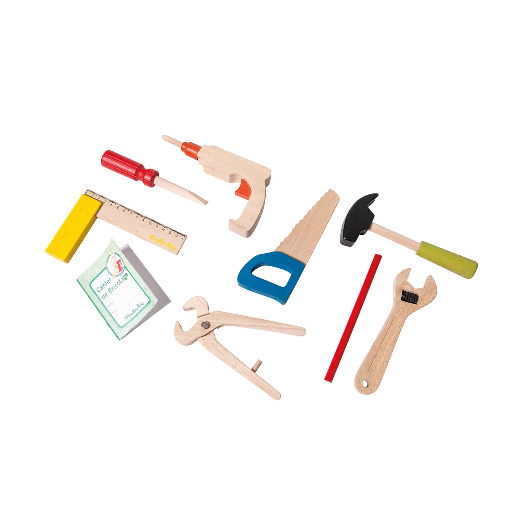 Wszystkie narzędzia wykonane są z drewna, zapakowane w walizkę o wymiarach: