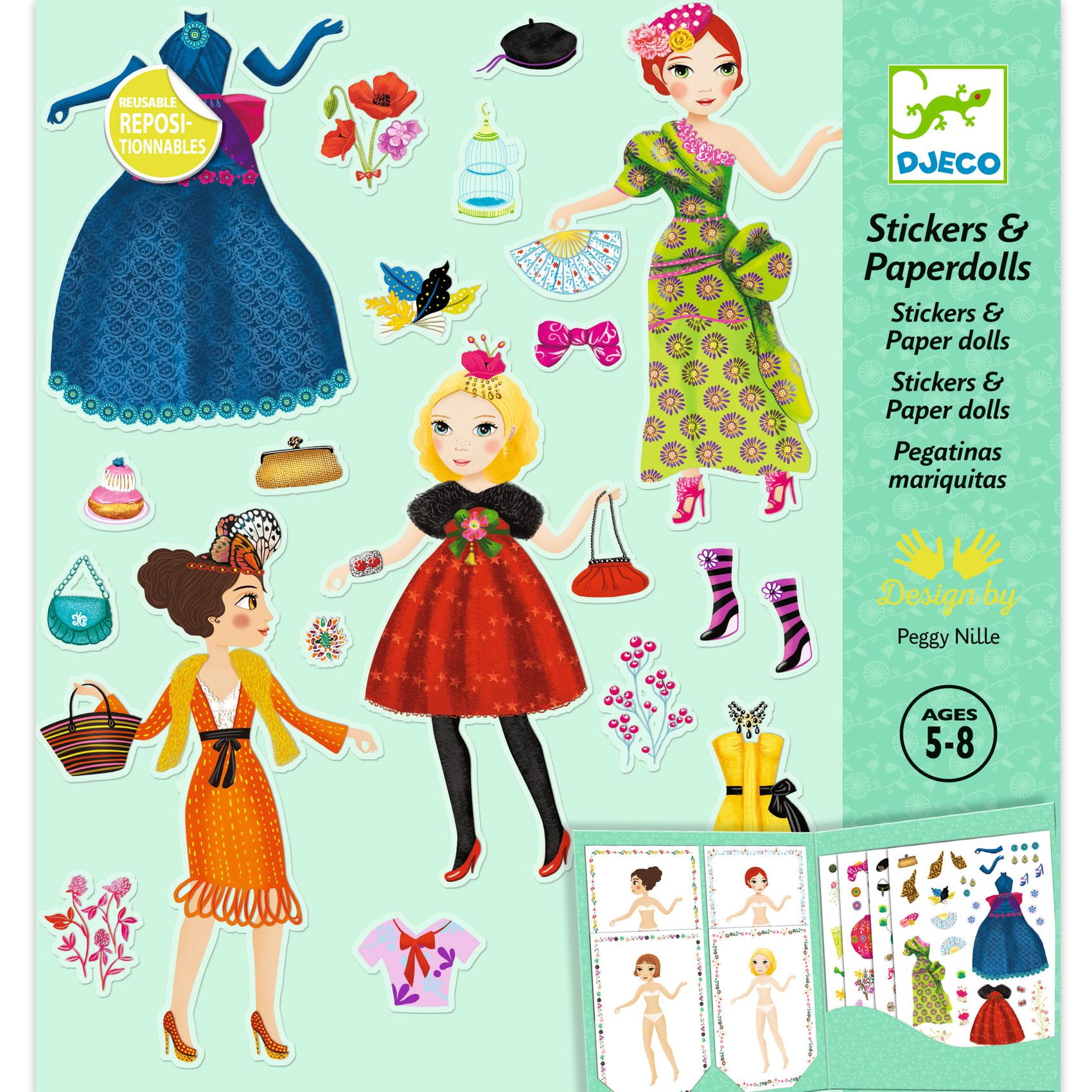 Gotowe karty z postaciami do ubrania za pomocą naklejek,do wielokrotnego