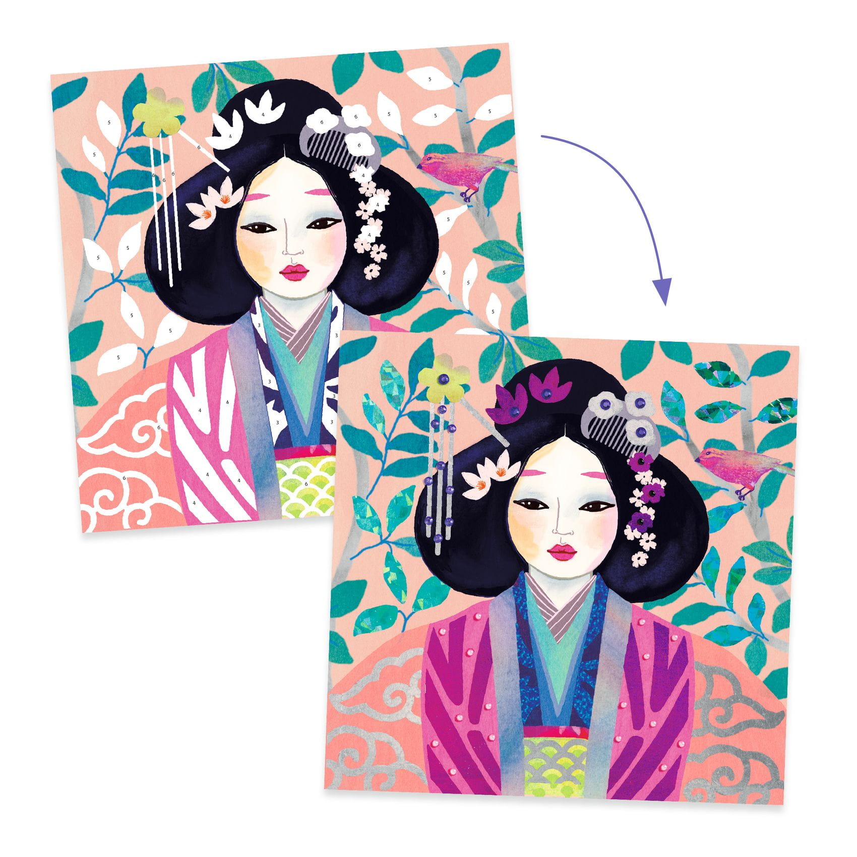 Zestaw artystyczny do utworzenia 4 obrazków za pomocą folii transferowej i małych diamencików. Za pomocą załączonego narzędzia oderwij warstwę zabezpieczającą klejącą powierzchnię i przyklej folię. Następnie dodaj diamenciki, aby obrazki mieniły się! Wszystkie materiały znajdują się w pudełku na gumkę służącym do przechowywania. Wszystkie elementy wykonane są z papieru i kartonu posiadającego certyfikat FSC®.