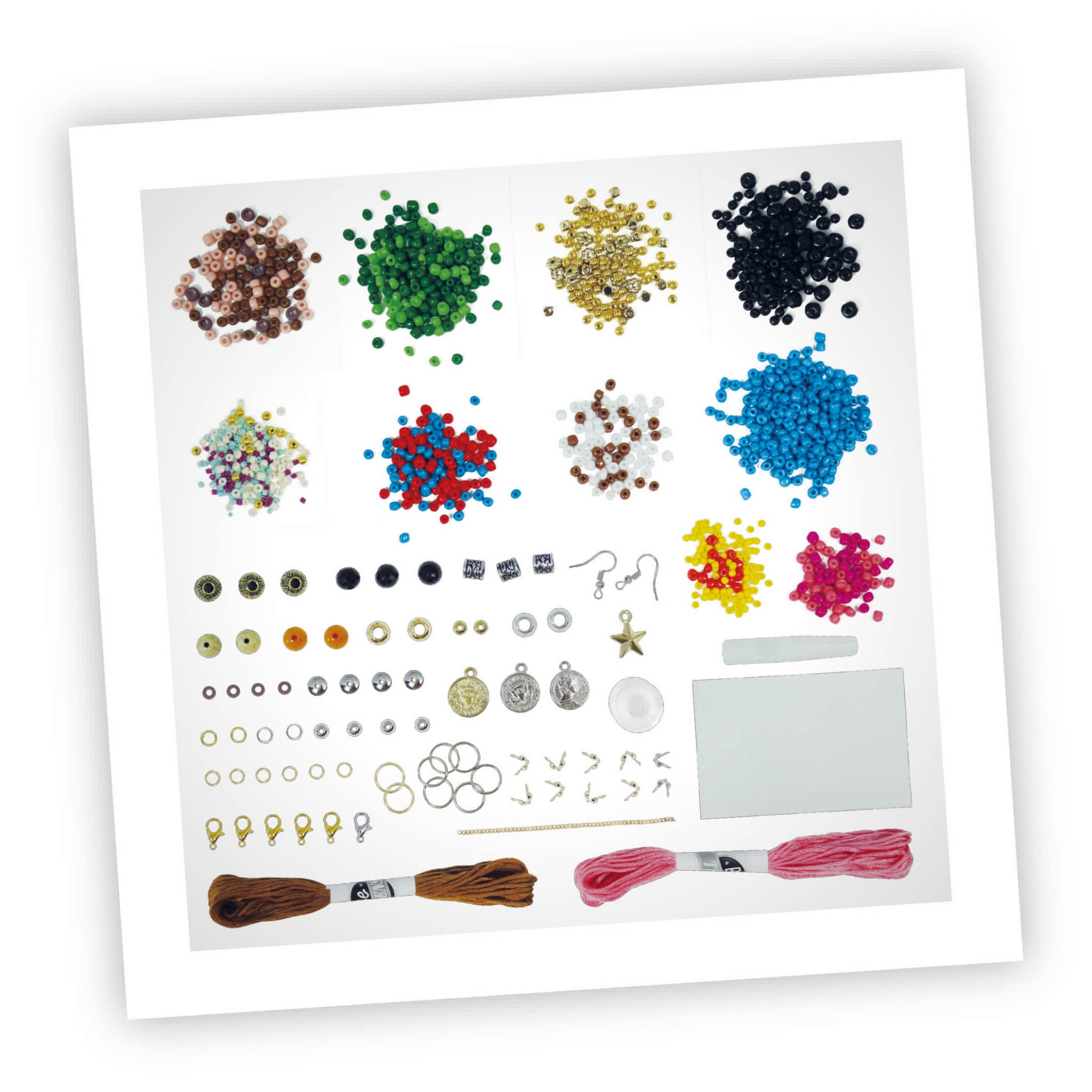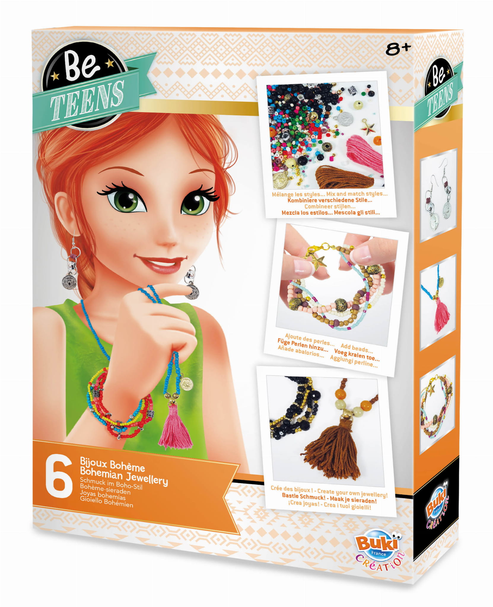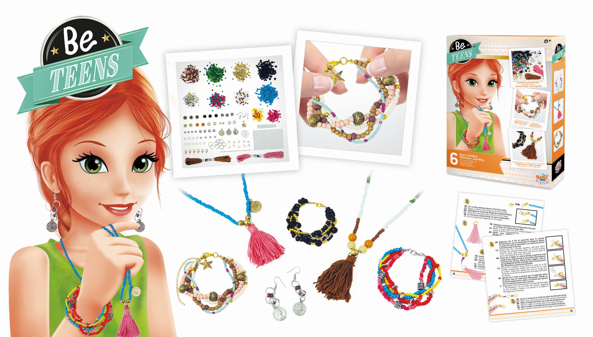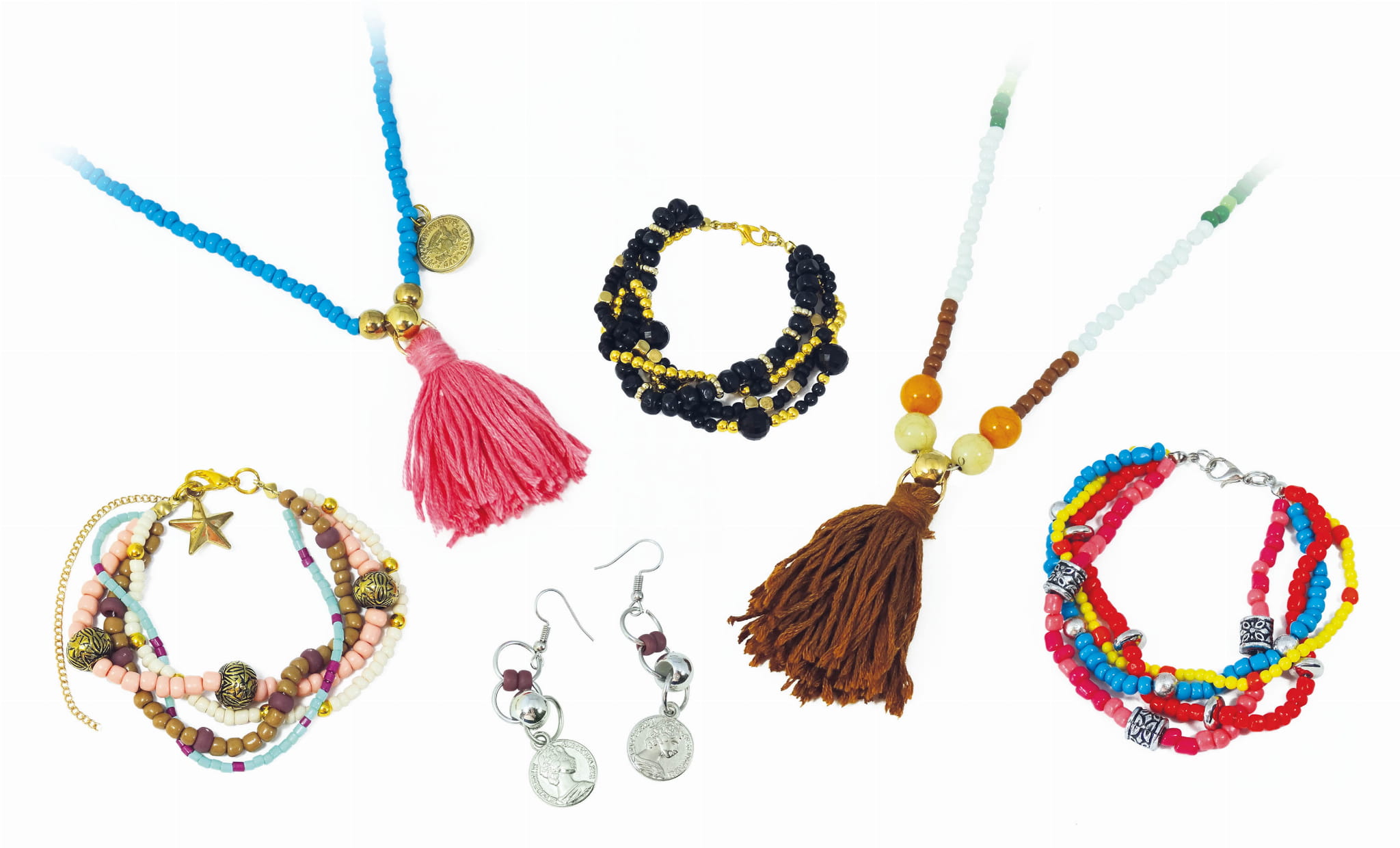 Zestaw do stworzenia biżuterii - bransoletek, wisiorków i kolczyków. Mieszaj i dopasowuj różne kolory i style koralików, oraz dodawaj zawieszki i frędzle, aby stworzyć biżuterię inspirowaną bohemą dla siebie, lub do podarowania w prezencie przyjaciółce, bądź innej bliskiej osobie.