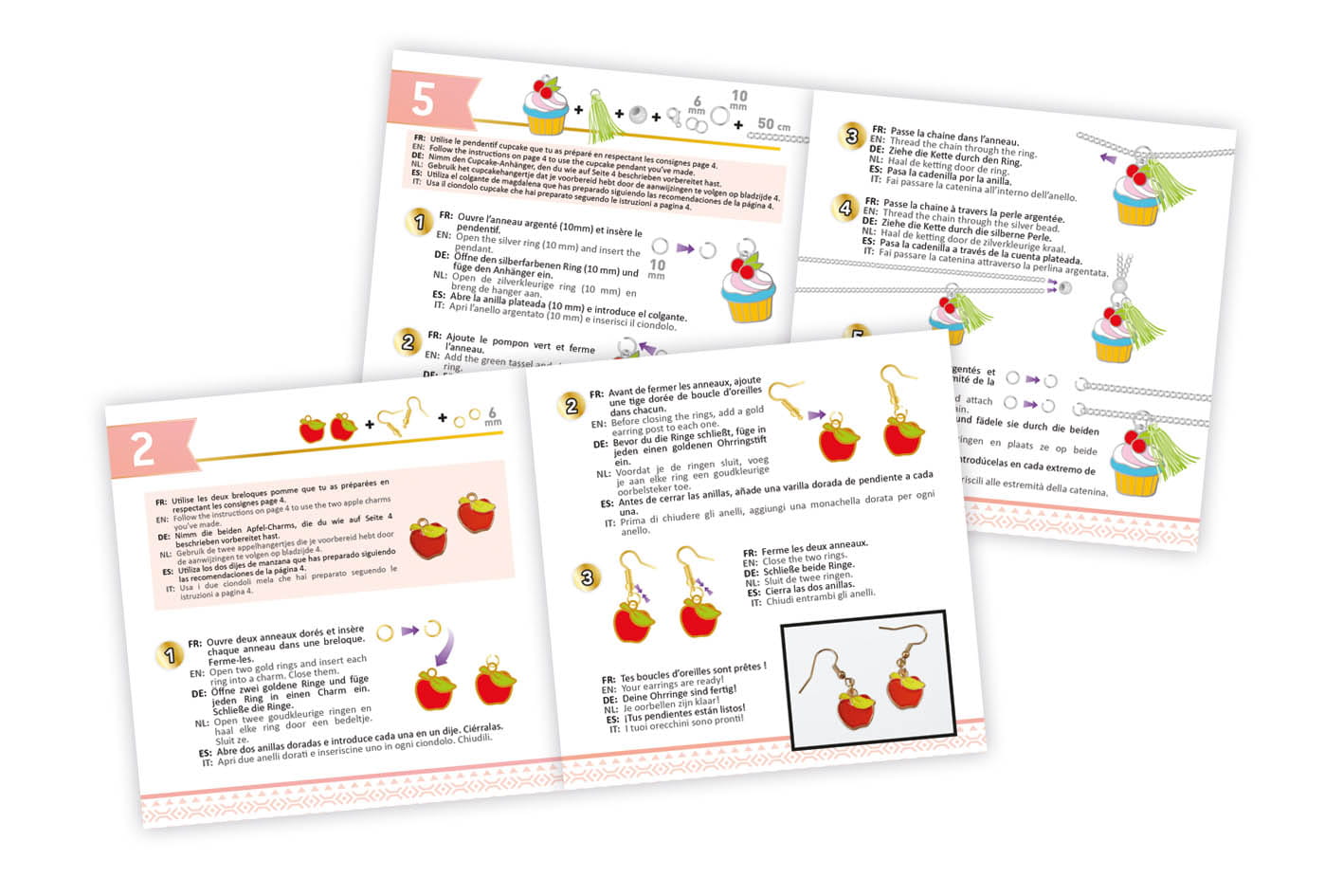 Zestaw zawiera elementy do stworzenia 2 naszyjników, 2 bransoletek