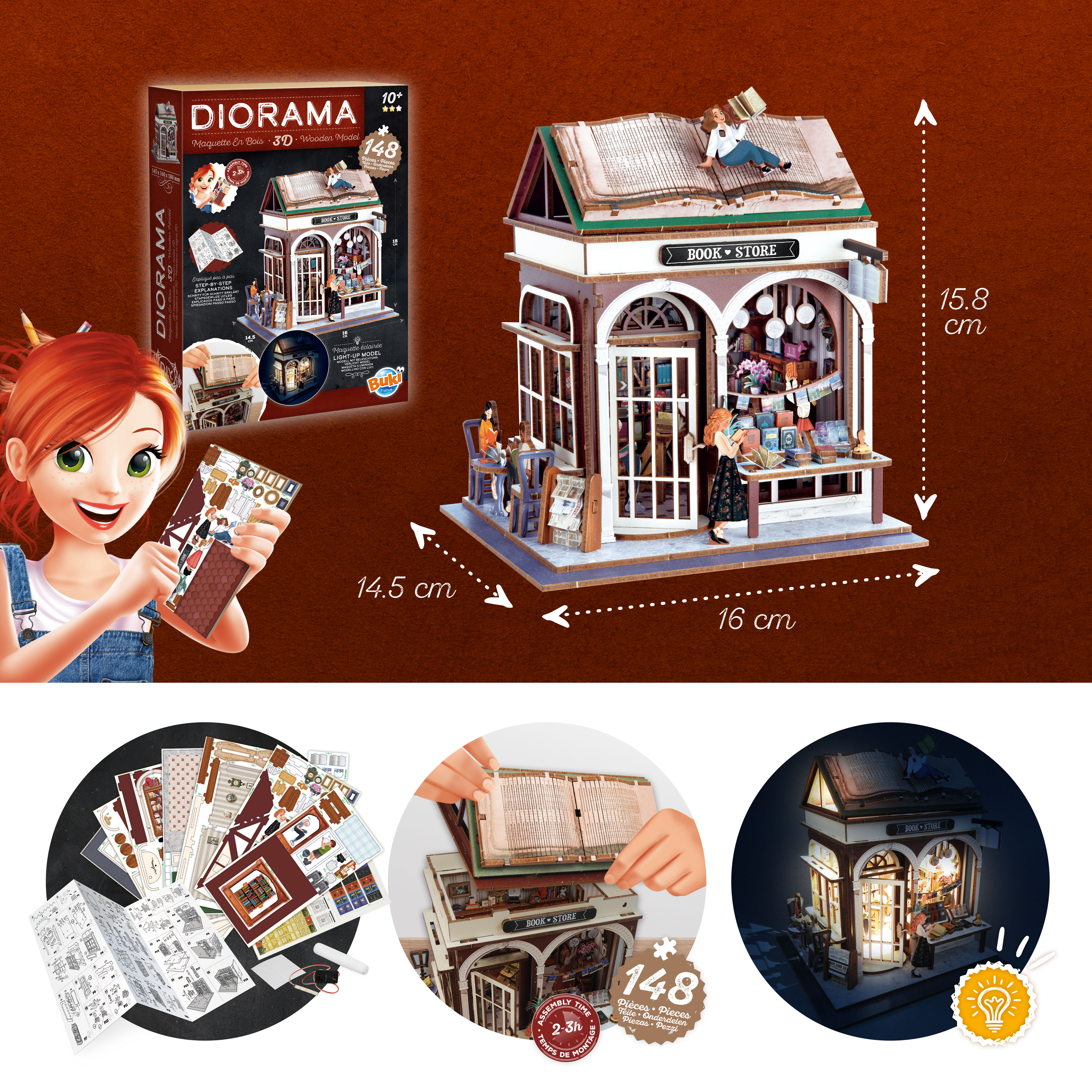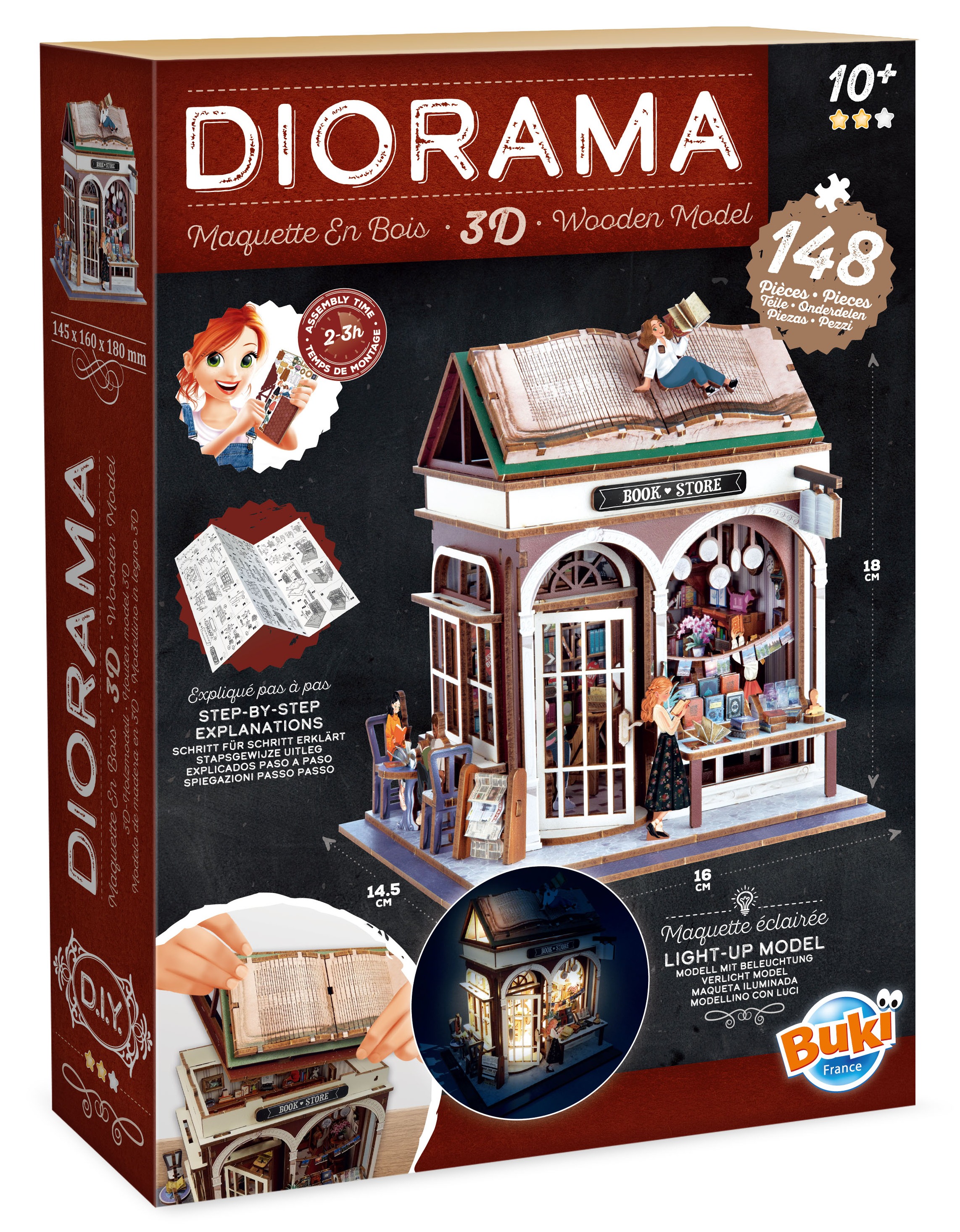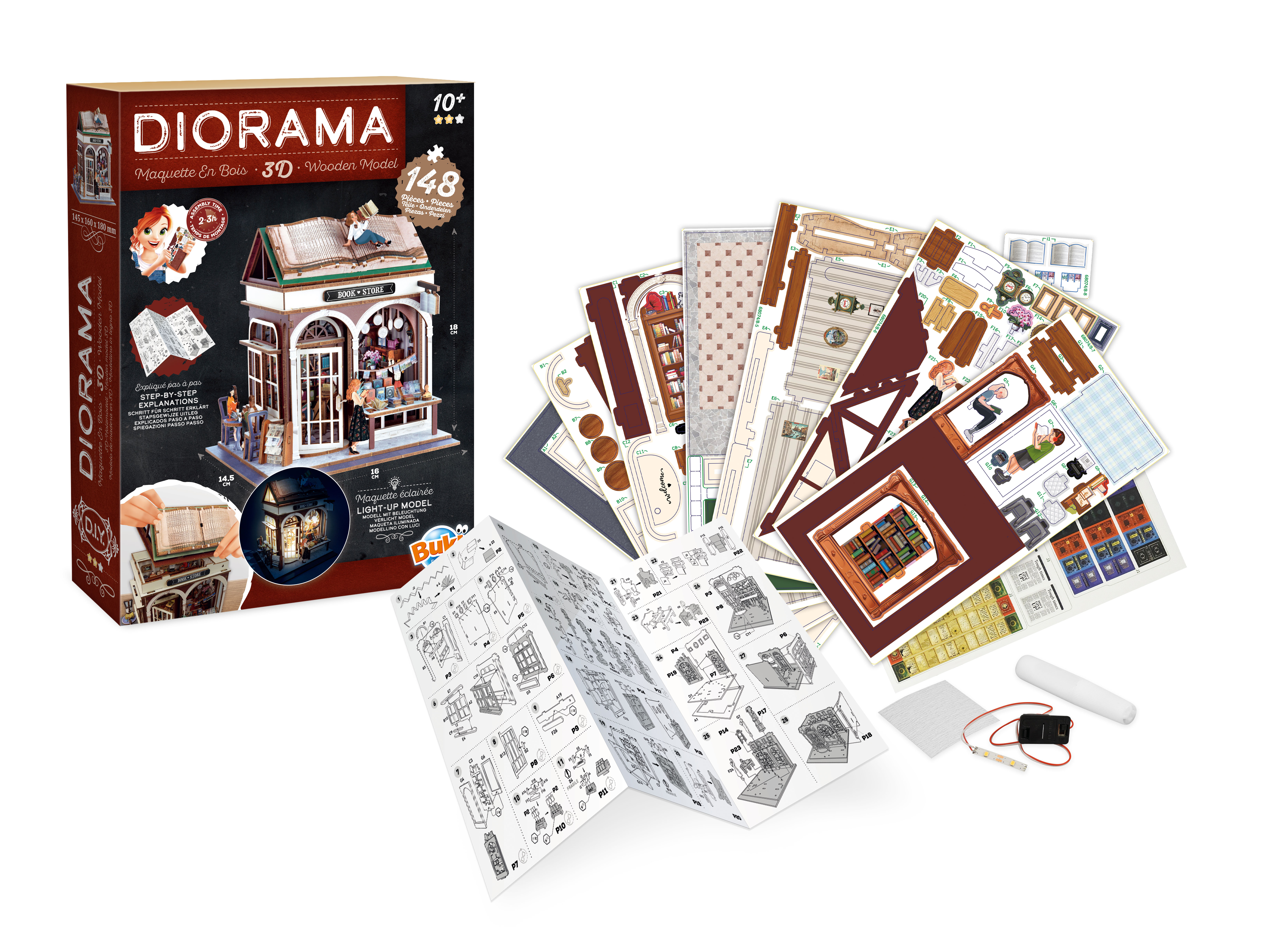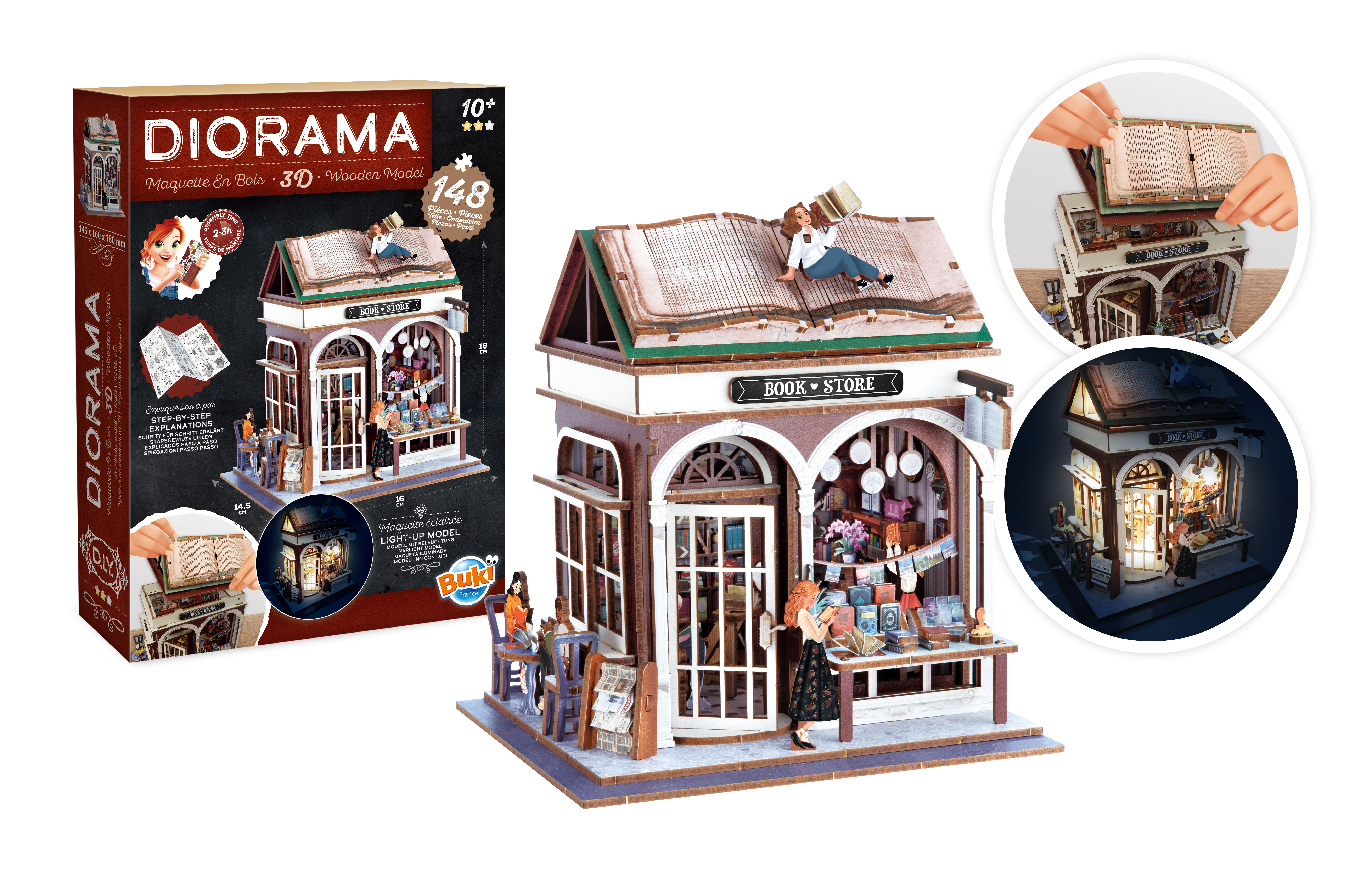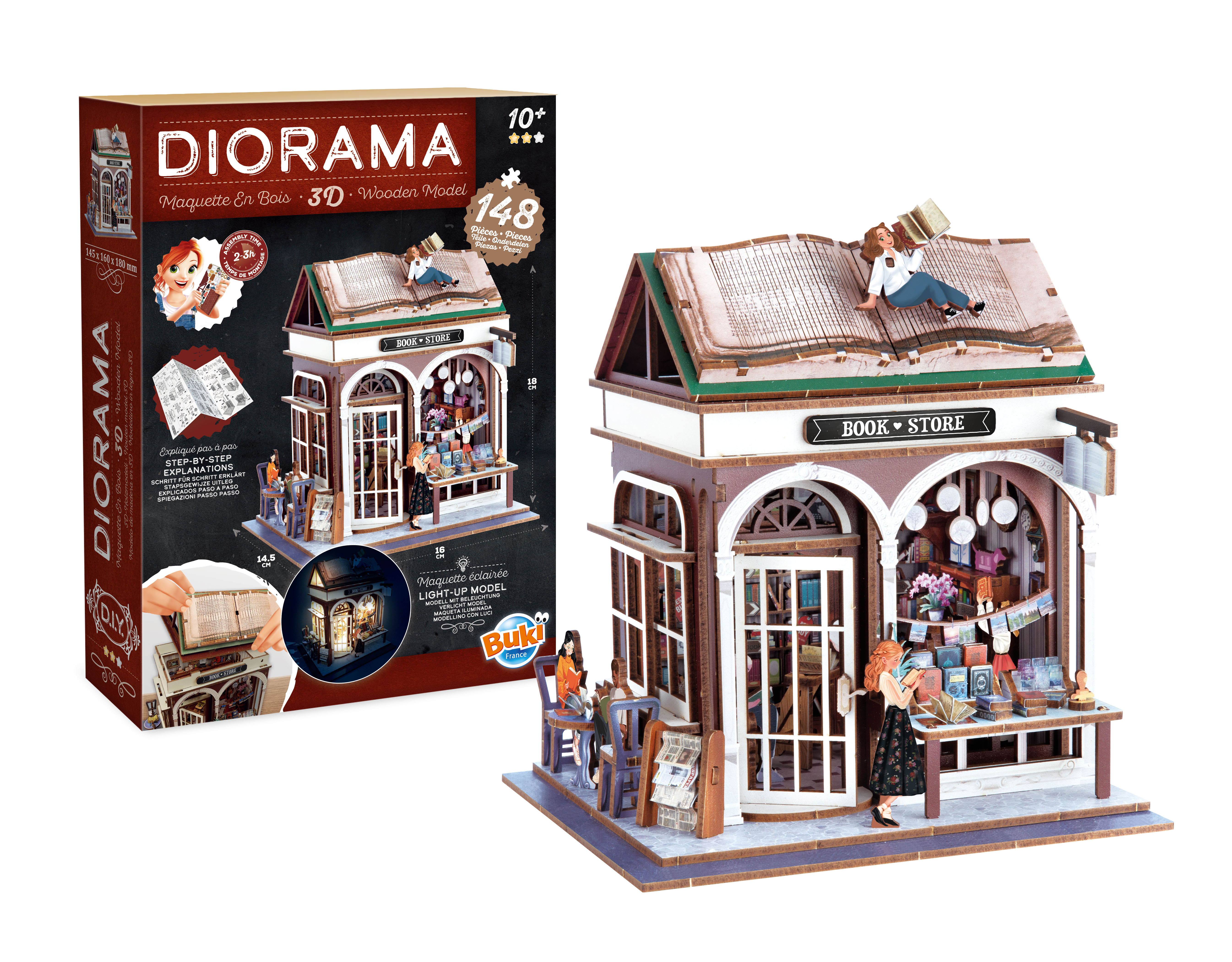 Kolekcja DIORAMA przedstawia tematyczne domki z wyposażeniem do samodzielnego złożenia. Idealne wprowadzenie do świata modelarstwa, gdzie tworzy się projekt od podstaw do najmniejszych szczegółów. Instrukcja krok po kroku prowadzi użytkownika przez cały proces montażu, który zajmuje od 2 do 3 godzin.