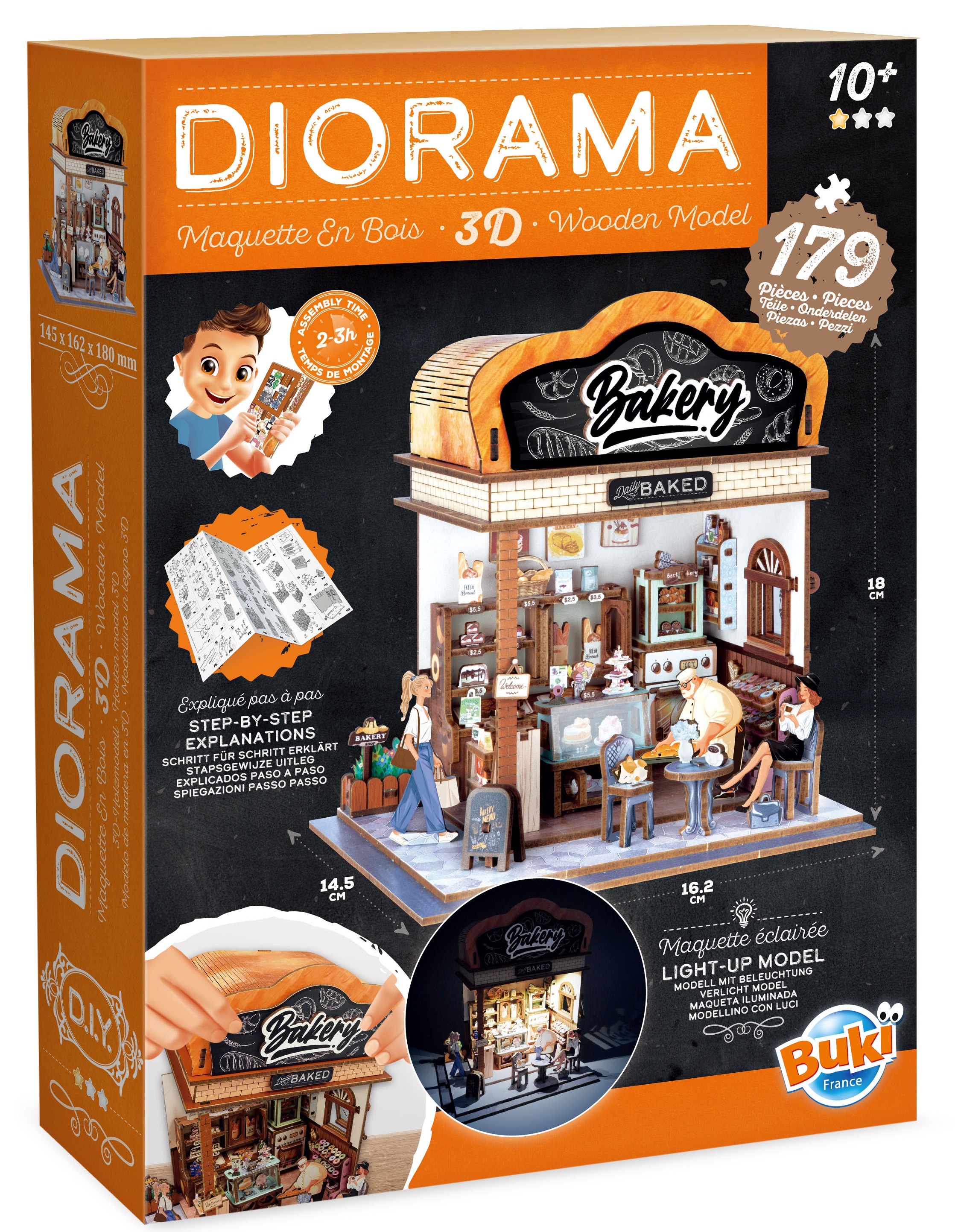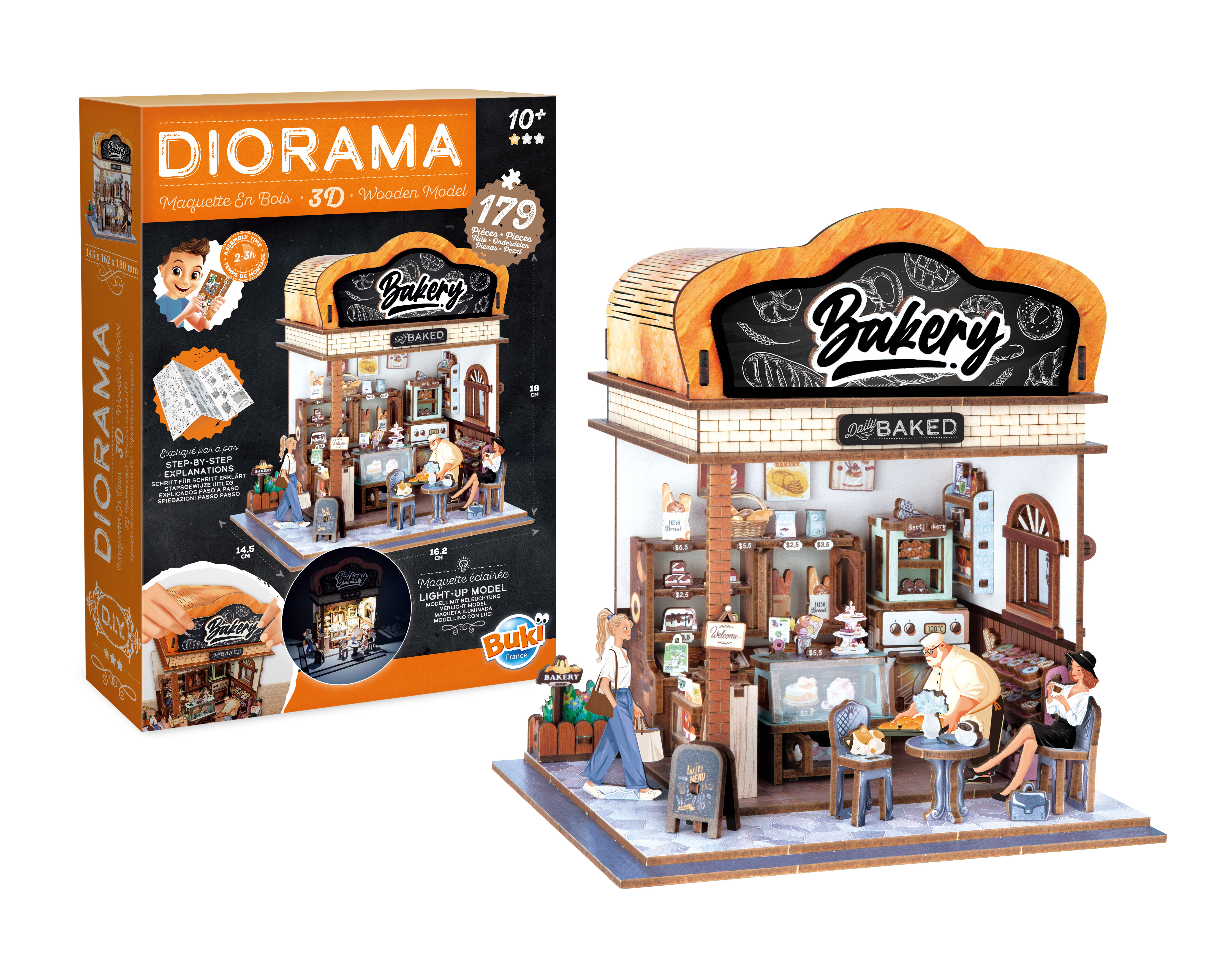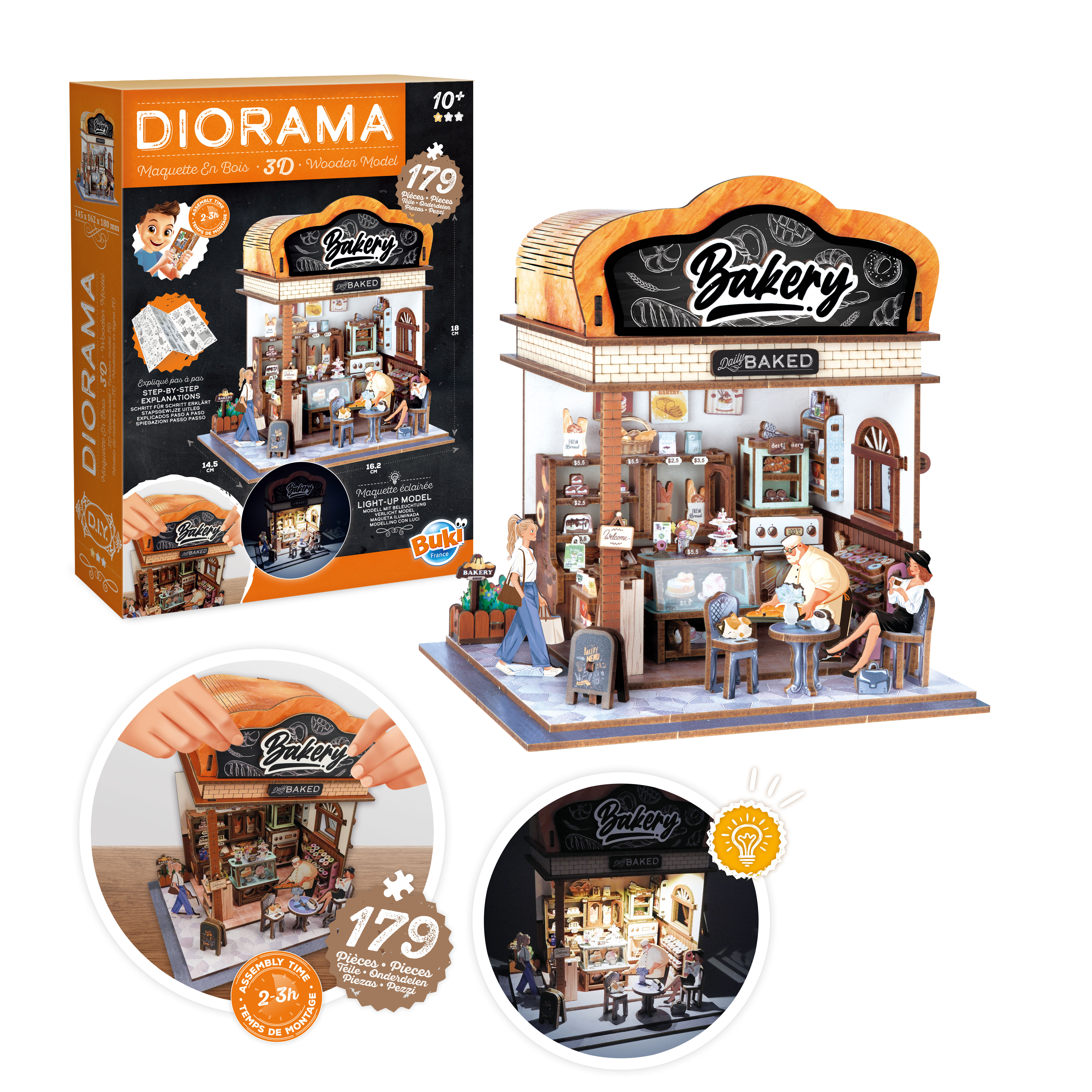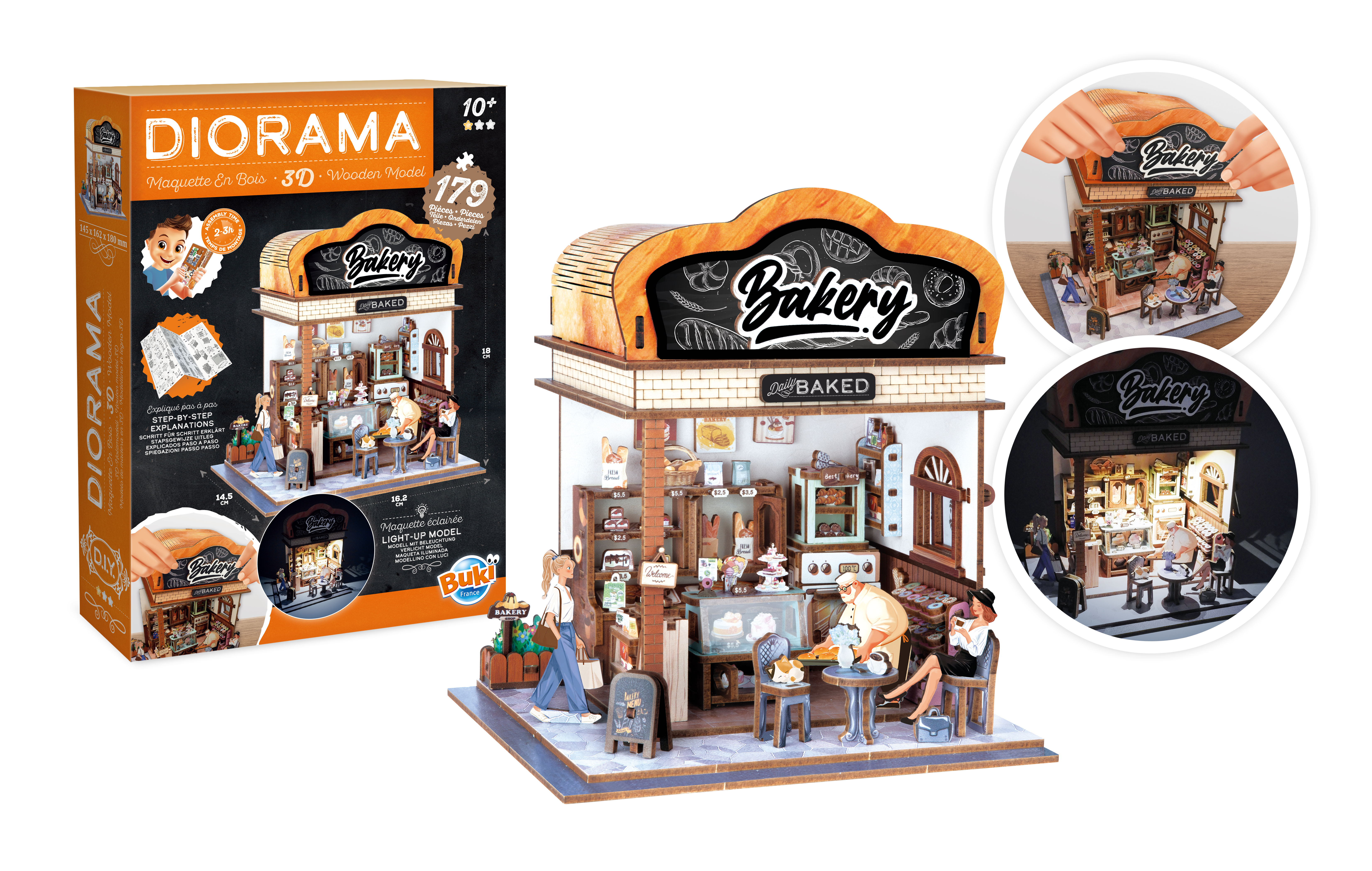 Kolekcja DIORAMA przedstawia tematyczne domki z wyposażeniem do samodzielnego złożenia. Idealne wprowadzenie do świata modelarstwa, gdzie tworzy się projekt od podstaw do najmniejszych szczegółów. Instrukcja krok po kroku prowadzi użytkownika przez cały proces montażu, który zajmuje od 2 do 3 godzin.