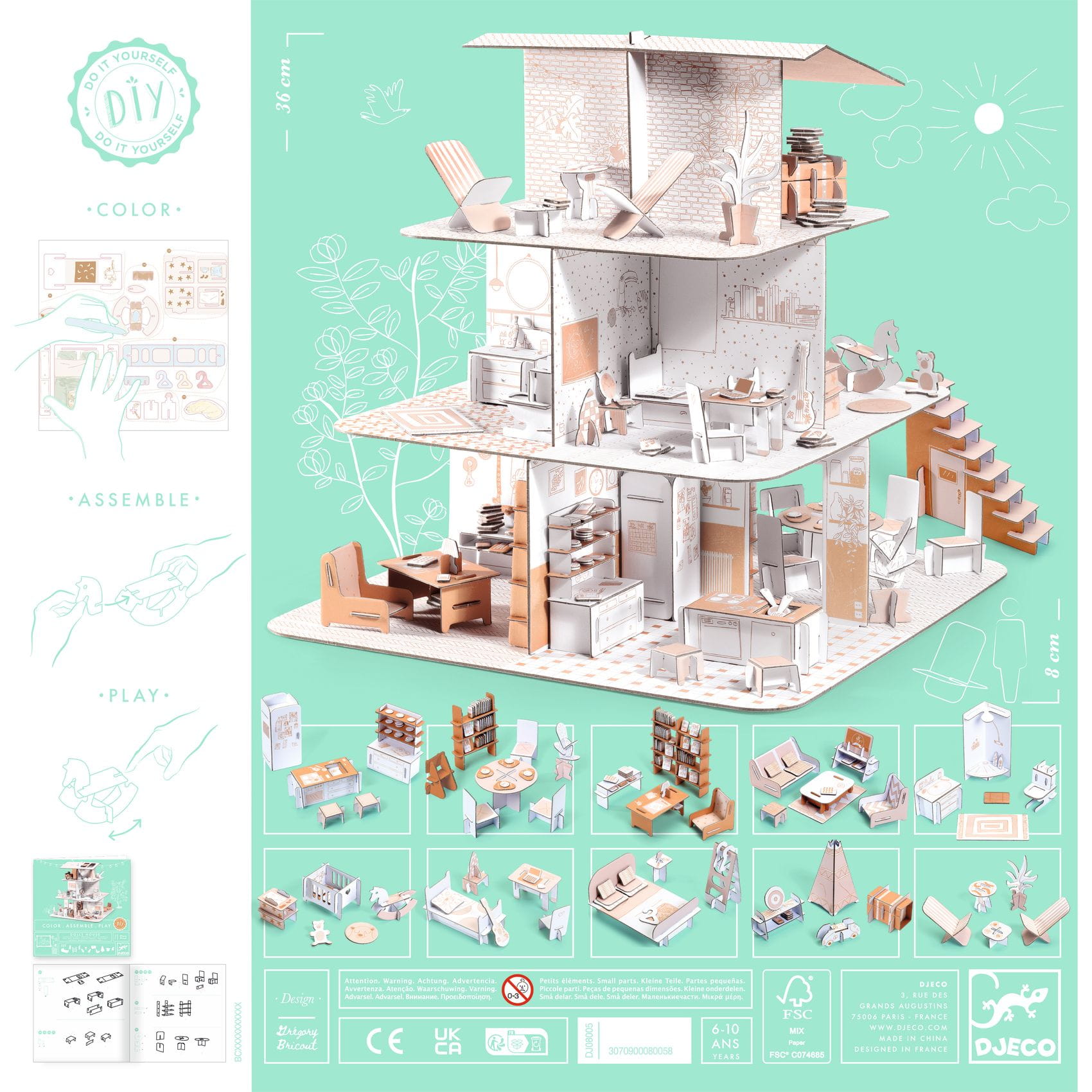 Kreatywny zestaw do stworzenia wymarzonego domku dla lalek. Zestaw rozwija