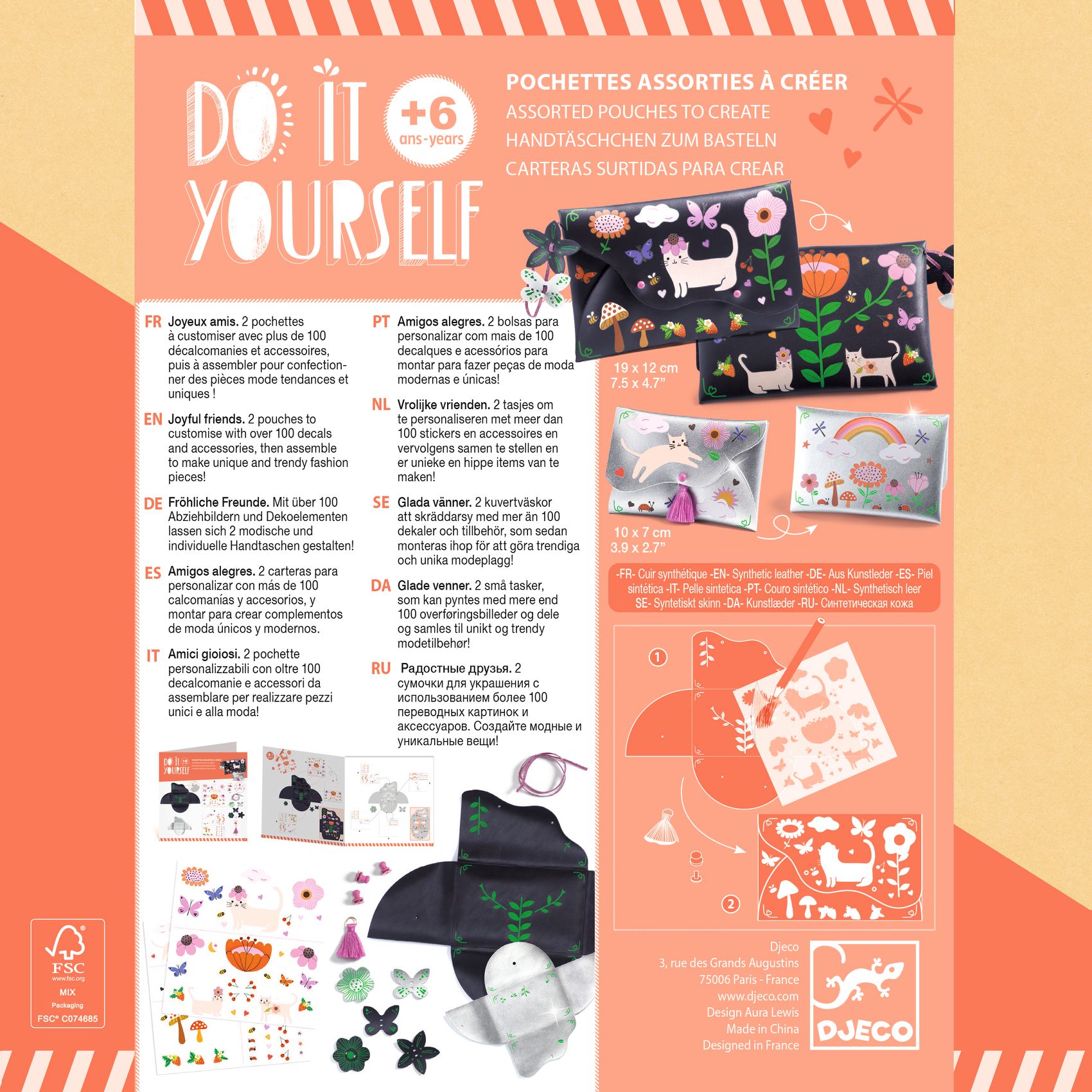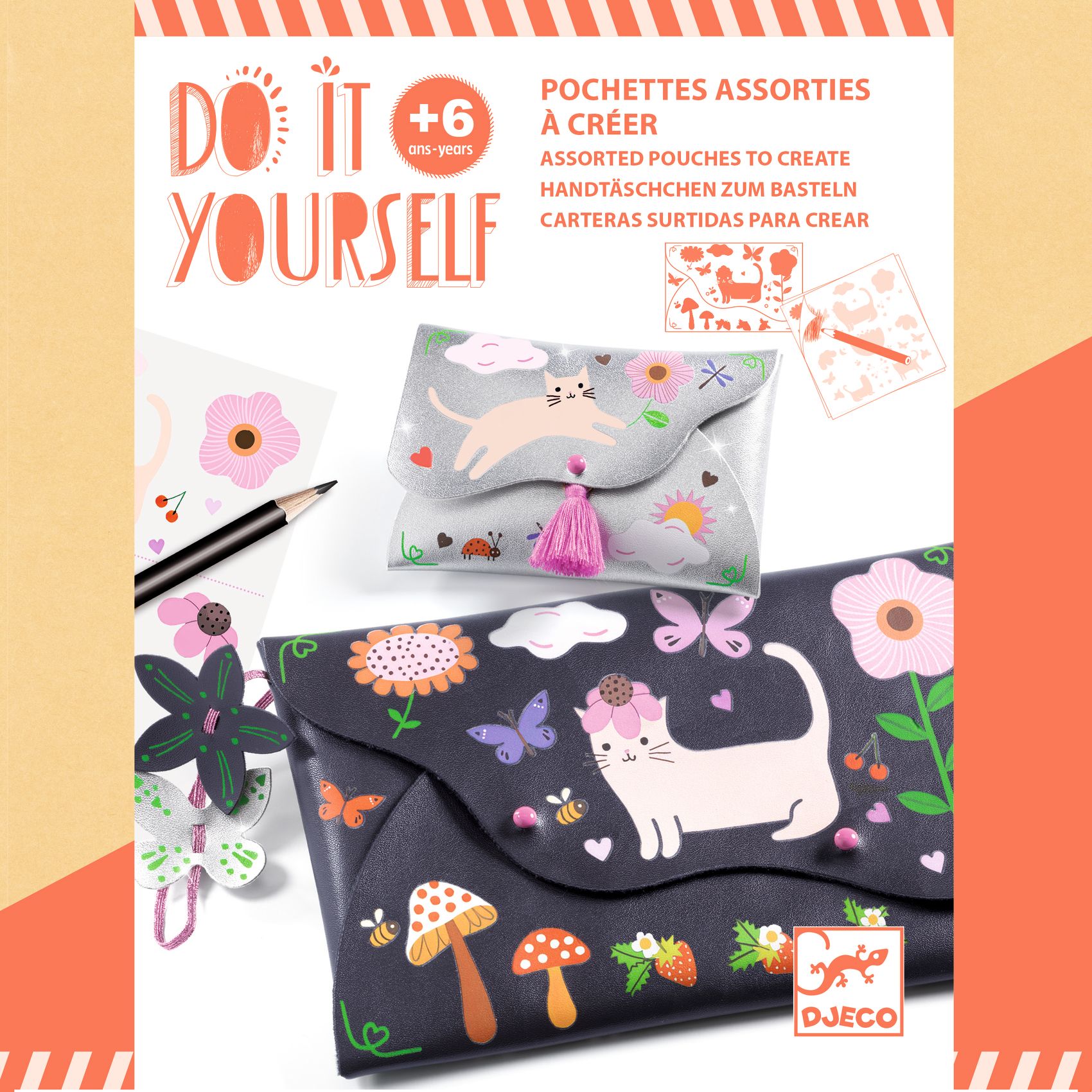 Zestaw artystyczny do samodzielnego zrobienia torebki kopertówki i pasującej do niej portmonetki ze sztucznej skóry. Za pomocą ołówka dzieci kalkują dostępne na szablonach ozdoby: ponad 100 wzorów do wyboru! Można korzystać z dostępnych projektów lub dać się ponieść swojej wyobraźni. Każdą torebkę można ozdobić dodatkowo pomponem lub skórzanymi dekoracjami. Produkt wykonany z papieru i kartonu z certyfikatem FSC®.
