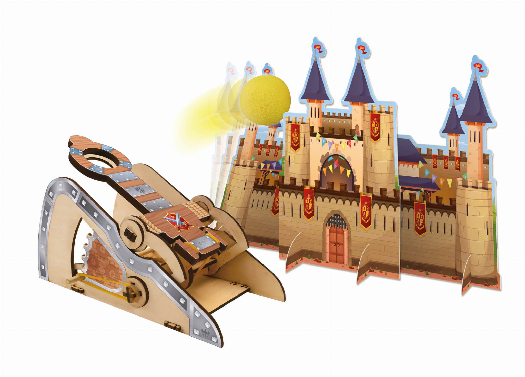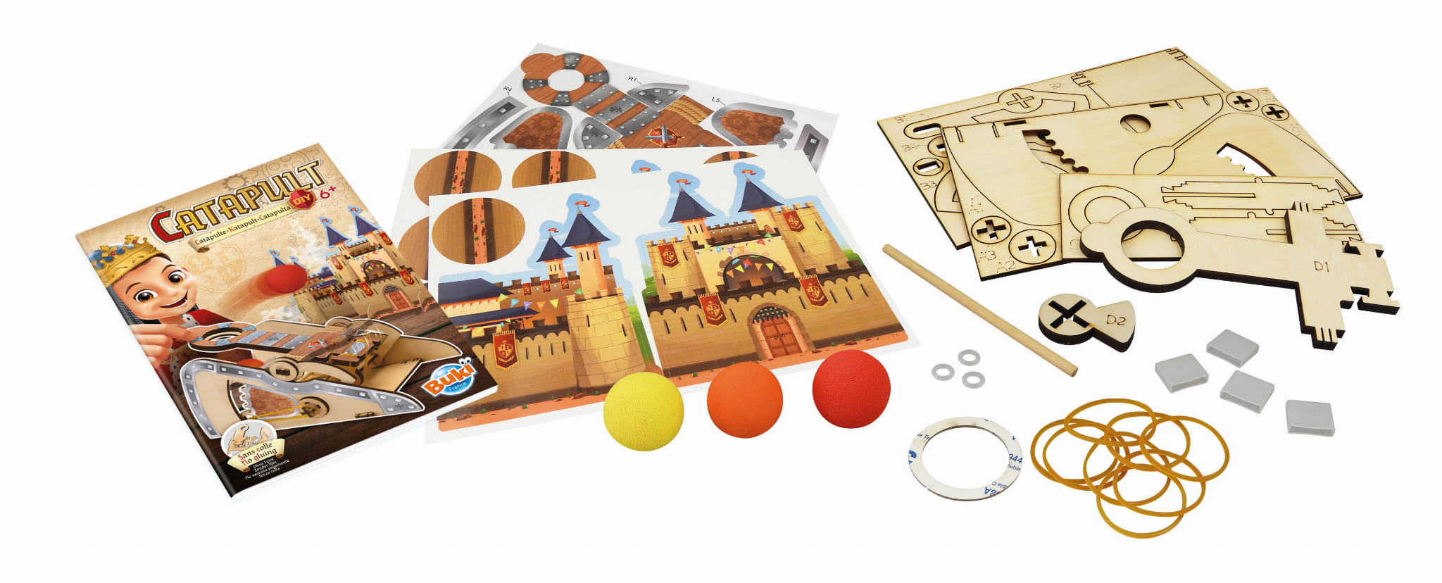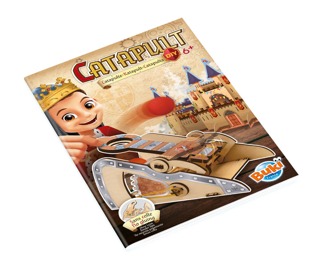 - 3 arkusze ze sklejki z elementami katapulty do złożenia