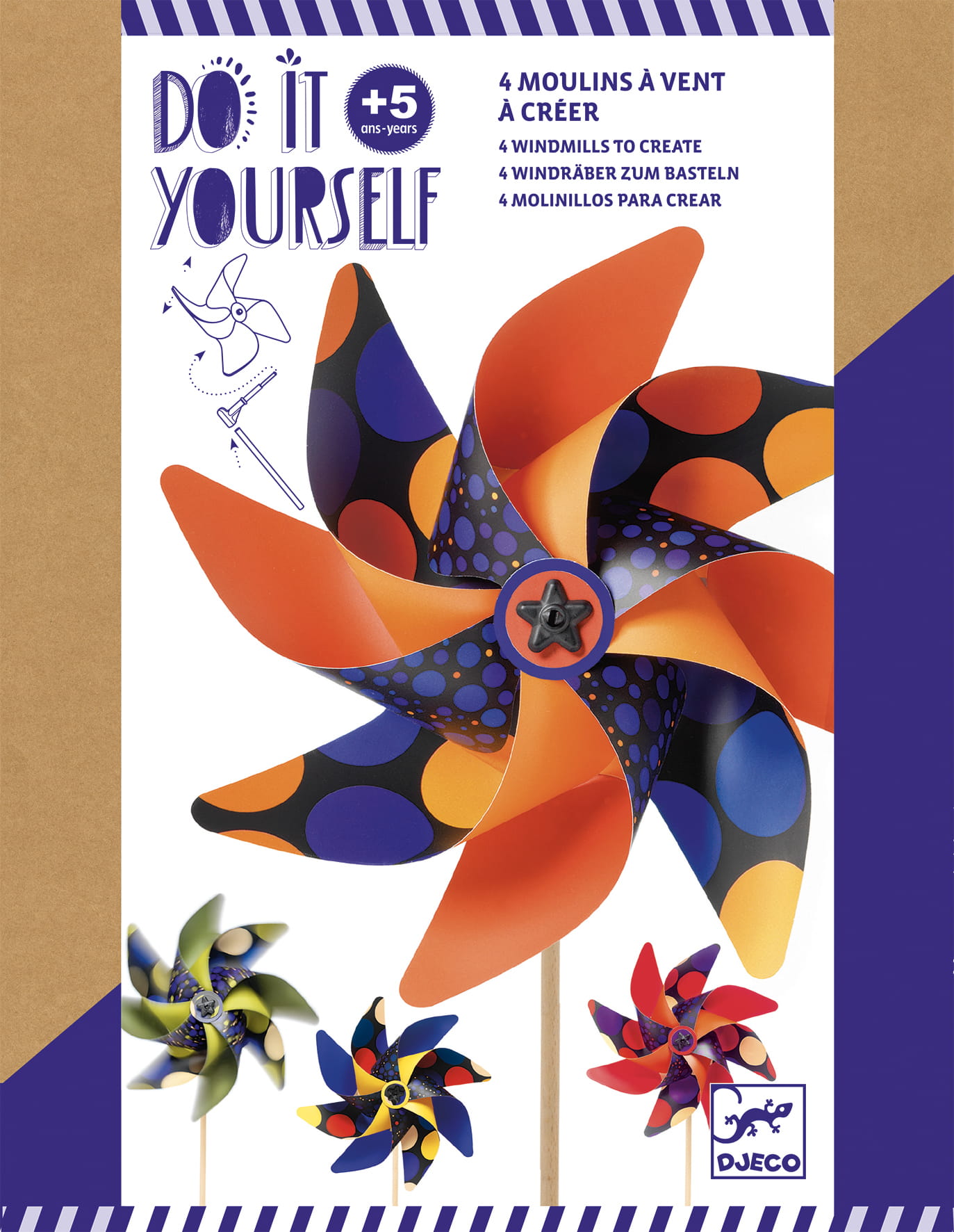 Ten zestaw jest świetnym zestawem twórczym a jednocześnie pozwala dzieciom odkrywać ich kreatywność. Za pomocą gotowych arkuszy dzieci mogą tworzyć własne wiatraki i obserwować ich ruch na zewnątrz.